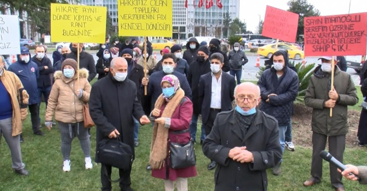 Eyüpsultan Yeşilpınar Mahallesi'nde devam eden kentsel dönüşüm projesi kapsamında elektrik, su ve diğer hizmetlerin kesilmek istendiği ve metrekarelerde büyük oranlarda kesintiler yapıldığı iddiasıyla bir araya gelen bir grup mahalle sakini İBB'yi protesto ederek, basın açıklaması yaptı. Ellerinde "Deprem Bahane Rant Şahane", "Sulukule olmayacağız" yazılı dövizler taşıyan grup "Hak Hukuk Adalet" sloganları attı. Metrekarelerden de büyük kesintiler yapıldığını belirten ve yüksek oranda ücretler istendiğini iddia eden mahalle sakinleri yetkililerden yardım istedi.
