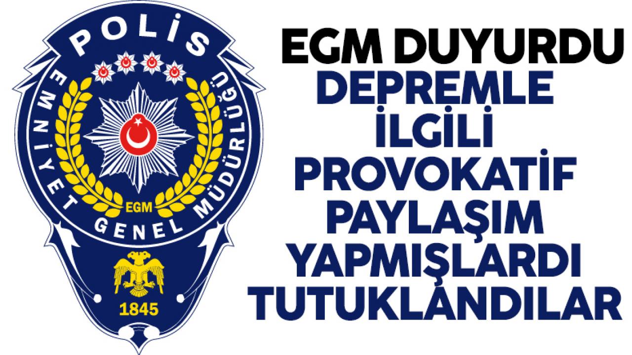 Ayrıca depreme ilişkin sosyal medya platformlarında, korku ve panik yaratmak amacıyla provokatif paylaşımlarda bulunduğu değerlendirilen 613 hesap yöneticisinin tespit edildiği ve ilgili birimlere gönderildiği vurgulanarak, "Bunlardan 293'ü hakkında adli işlem başlatılmıştır. Cumhuriyet başsavcılıklarından alınan talimat doğrultusunda 78 şahıs gözaltına alınmış, 20'si tutuklanmıştır. Öte yandan, depremzedelere yardım yapmak isteyen vatandaşlarımızın iyi niyetlerini suistimal etmek amacıyla oluşturulmuş; 46 adet oltalama (phishing) dolandırıcılığına yönelik hazırlanan internet sitesinin kapatılması sağlanmış, resmi kurumların adını kullanarak/taklit ederek vatandaşlardan para talep eden 15 adet sosyal medya platformu hesabı ile ilgili gerekli işlemler yapılmış, ayrıca 'deprem yardımı' teması kullanılarak para yatırılması talep edilen 6 adet kripto varlık cüzdan adresi tespit edilerek cüzdanların dondurulması sağlanmıştır" ifadelerine yer verildi.