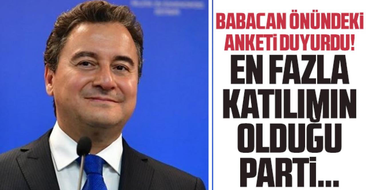 Partilerine üye olan vatandaşlar arasında yaptıkları anketin sonuçlarını açıklayan Babacan, en çok kaymanın yüzde 30 ile AK Parti'den olduğunu belirterek şunları söyledi: