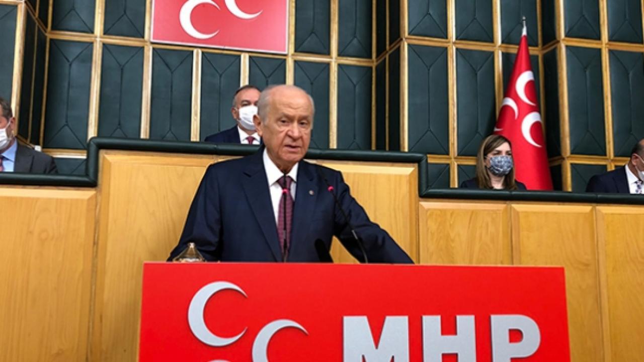 MHP lideri Bahçeli, TBMM'de partisinin grup toplantısında konuştu. Salgının bütün ezberleri bozduğunu kaydeden Bahçeli, "Türkiye salgının ateşini söndürmek maksadıyla muazzam bir direnç gösterirken, arkadan dolaşıp yapılan onca muhterem hizmeti karalamaya, insanüstü çalışmaları kötülemeye niyetlenmek namuslu siyaset hali, utanma duygusu olan siyasetçi vasfı olamayacaktır. Maalesef CHP'nin, İP'in ve diğerlerinin sakat, şaibeli ve sarsak muhalefet argümanları arasında Covid-19 da yerini almıştır. Özellikle Türkiye'nin Covid-19 salgınını başarıyla yönettiğini ifade etmek vicdan sahibi herkesin görevi olmalıdır. Türkiye'yi yöneten irade devletin bütün imkânlarını seferber ederek esnaflarımızın, dar ve sabit gelirli insanlarımızın, yoksul ve muhtaç kardeşlerimizin, emekli, dul ve yetimlerimizin, toprağına ümitlerini eken çiftçilerimizin taleplerini peyderpey karşılamaktadır. Sırtında yumurta küfesi olmayan CHP Genel Başkanı'nın tüm iddiaları boştur, dayanıksızdır. Nitekim CHP yönetimi bozguncudur, milletimiz 2023 Haziran ayında bozguncuları sandıkta bozuk para gibi harcayacaktır. Milliyetçi Hareket Partisi olarak devletin ve hükümetin alacağı her kararı, uygulayacağı her tedbiri destekliyoruz" diye konuştu.