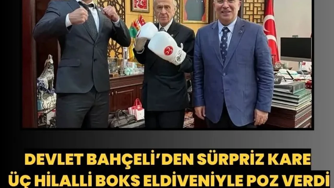 Hediye sonrası hatıra fotoğrafı çekilirken Bahçeli’nin boks eldivenlerini takarak verdiği poz, sosyal medyada kısa sürede gündem oldu.