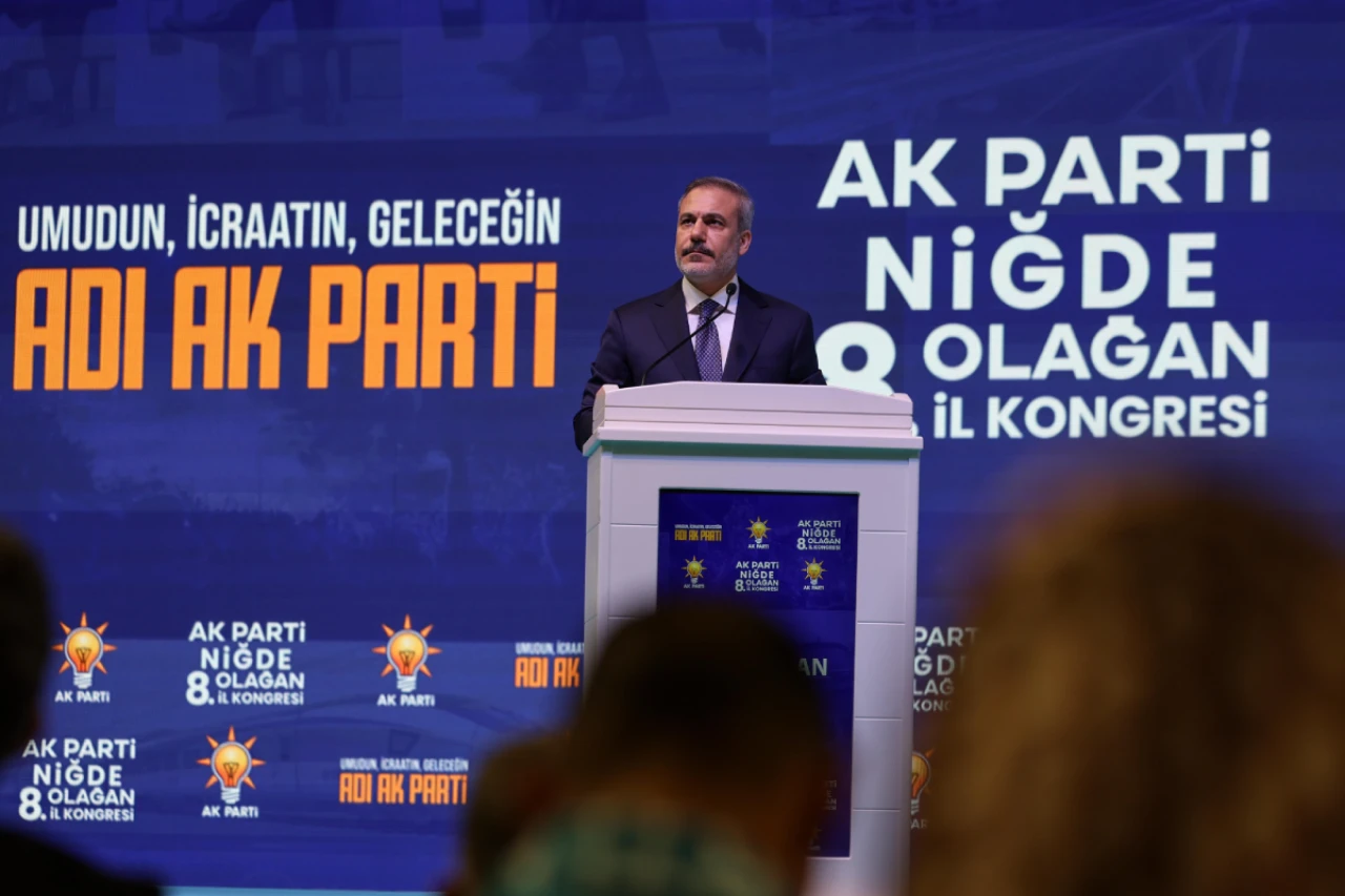 Niğde'deki AK Parti 8. Olağan İl Kongresi'nde konuşan Dışişleri Bakanı Hakan Fidan, Suriye'deki gelişmelere değindi. "Suriye'de haklının ve mazlumun yanında saf tutmak bizim için büyük bir şeref" diyen Fidan, Türkiye’nin Suriye'ye destek olma kararlılığını yineledi.
