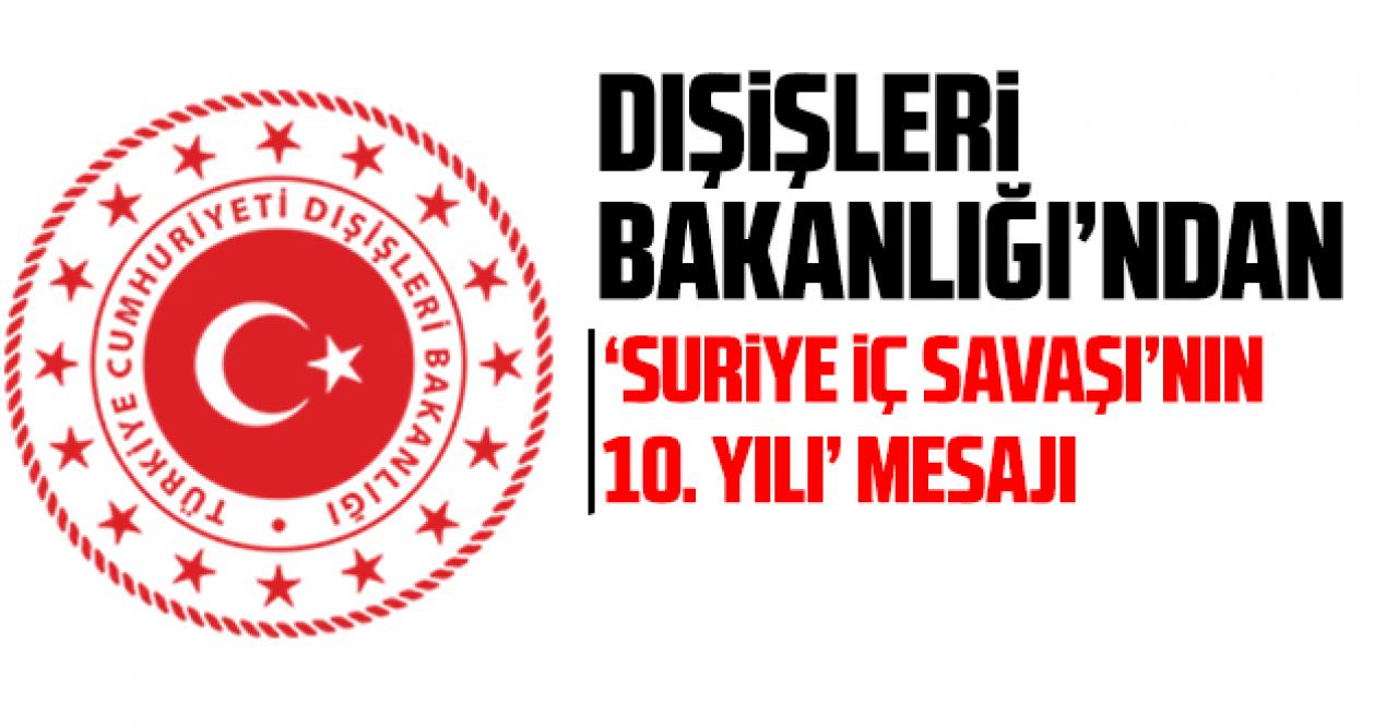 Suriye'de başlayan iç savaşın 10. yılı vesilesiyle Bakanlık tarafından yapılan yazılı açıklamada, "Suriye halkının demokrasi, adalet, hak ve özgürlük talebiyle başlattığı barışçıl gösterilere rejim güçlerince baskı ve şiddetle karşılık verilmesini izleyen on yıl, yarım milyon masum sivilin hayatını kaybetmesine, halkın yarısının yerlerinden edilmesine ve etkileri nesiller boyunca hissedilecek acılara tanık olmuştur. Bugün itibariyle ülkede 13.4 milyon Suriyeli insani yardıma muhtaçtır. 2.4 milyon çocuk eğitimden yoksundur. 5.9 milyon kişi evsizdir." ifadeleri yer aldı.