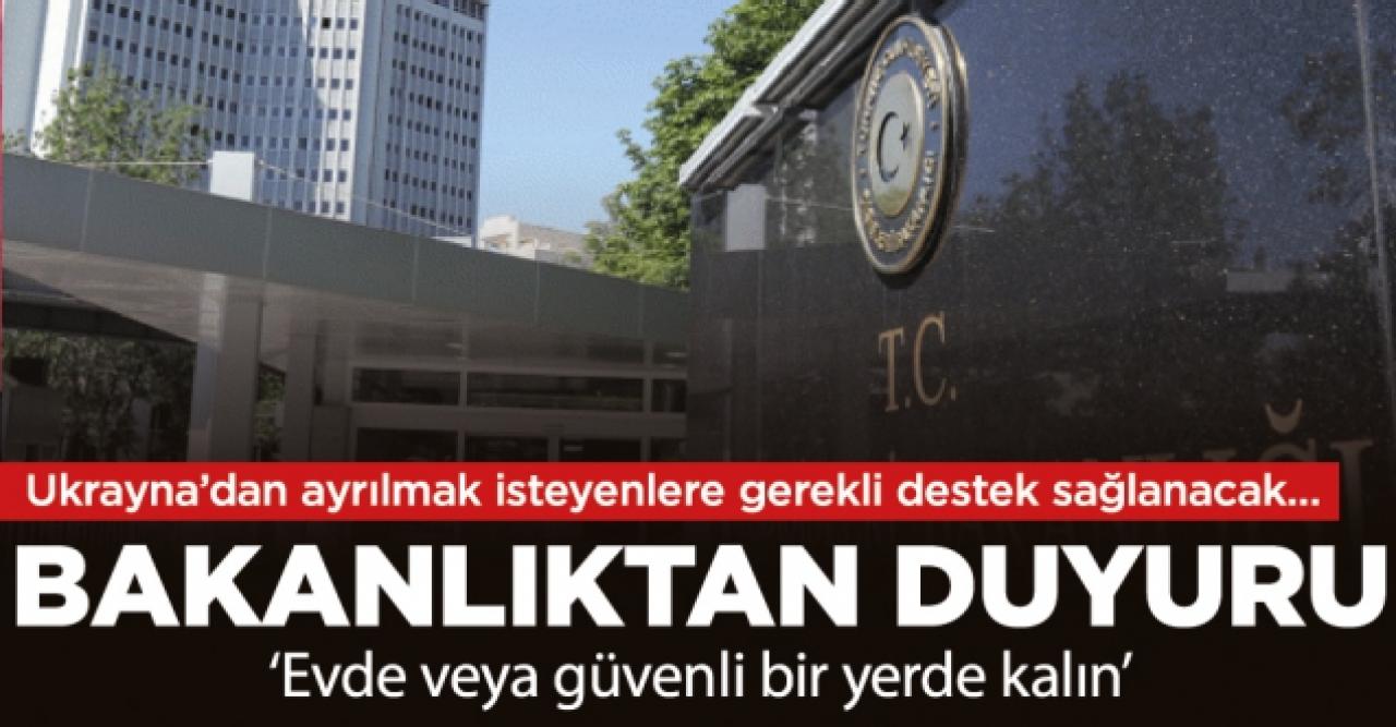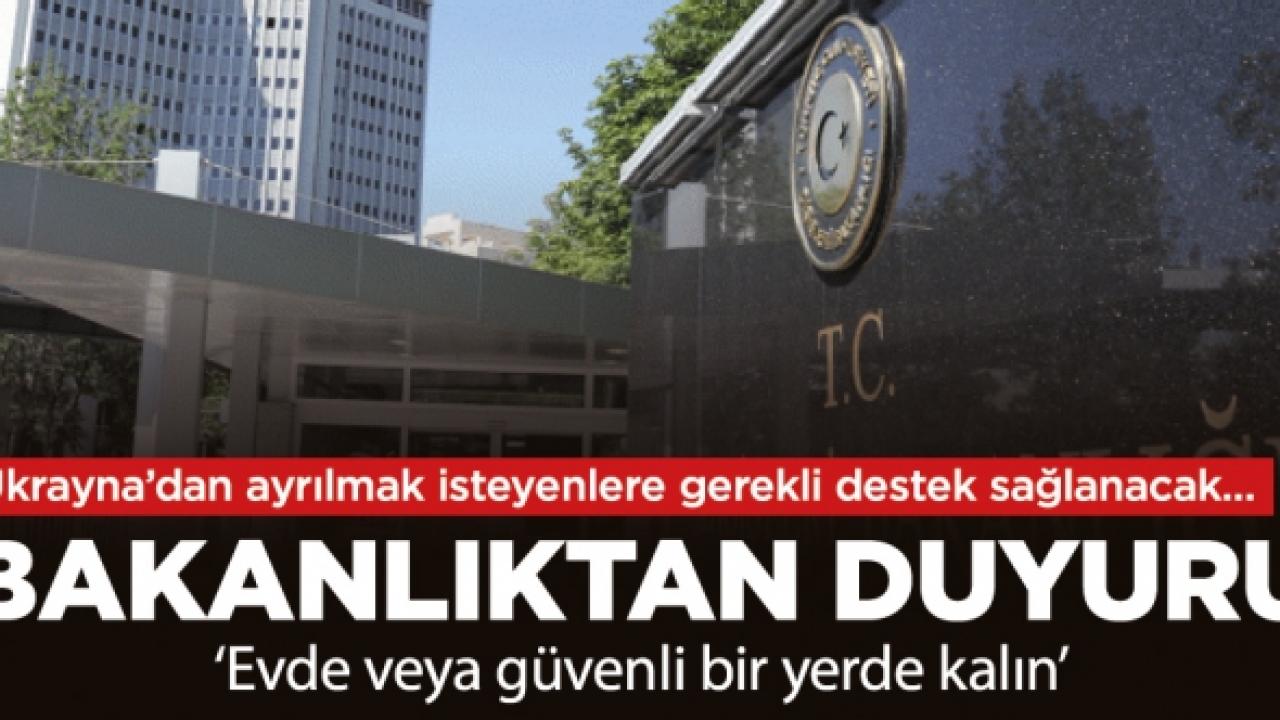 Bakanlıktan yapılan yazılı açıklamada, "Ukrayna'da yaşayan değerli vatandaşlarımız; Ukrayna hava sahası halen kapalıdır. Mevcut aşamada evlerinizde veya güvenli bir yerde kalmanızı, seyahatten kaçınmanızı rica ediyoruz. Ülkeden ayrılmak isteyenler için gerekli destek ve yönlendirme sağlanacaktır" denildi.