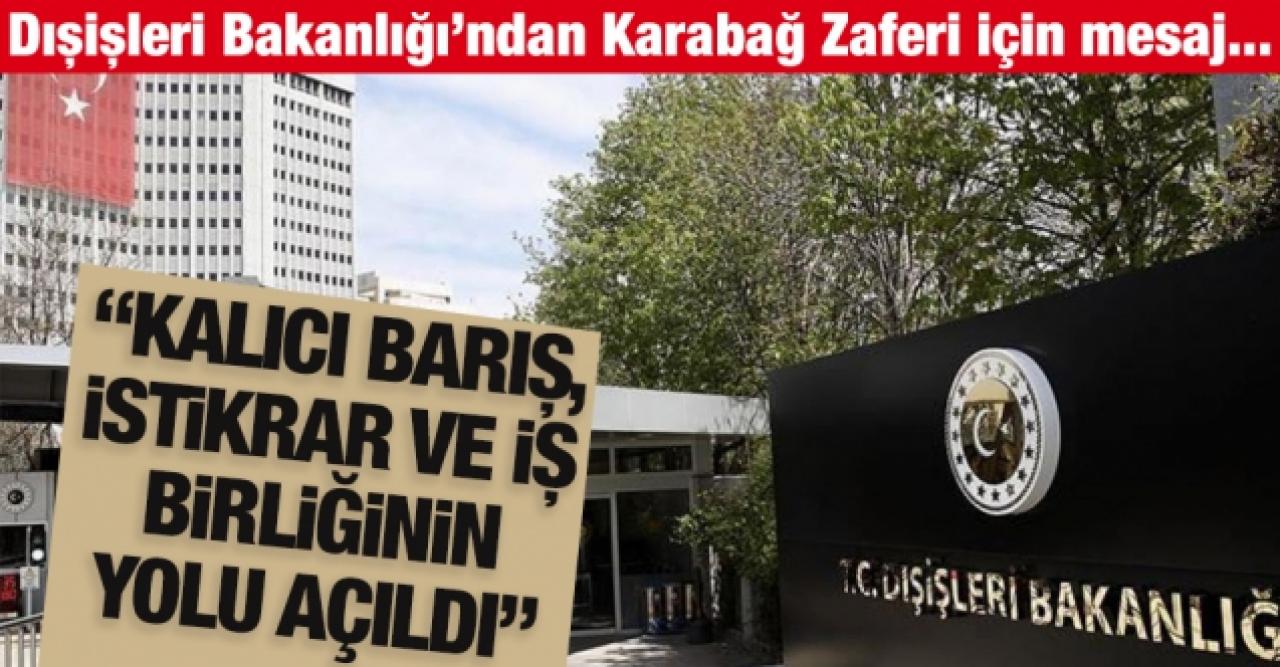 Bakanlıktan yapılan yazılı açıklamada, "Azerbaycan'ın 44 günlük Vatan Muharebesi'nde geçtiğimiz yıl 8 Kasım'da kültür başkenti kadim Şuşa'yı kurtararak taçlandırdığı zaferini kutluyoruz. İşgal altındaki topraklarını geri kazanmak için meşru müdafaa hakkını kullanan Azerbaycan, 9 Kasım'da imzalanan Üçlü Bildiri ile sahadaki zaferini masada da tescil etmiş, yıllardır uygulanmayan Birleşmiş Milletler Güvenlik Konseyi kararlarını öz iradesiyle hayata geçirmiştir" denildi.