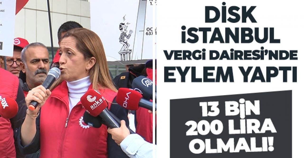 DİSK, gelir vergisi dilimleri yüzünden işçilerin ücretlerinde yaşanan kayıpların sona erdirilmesi, ücretlilerden alınan gelir vergisi oranlarının düşürülerek vergi dilim miktarlarının yükseltilmesi talebiyle Fatih'teki İstanbul Vergi Dairesi Başkanlığı önünde açıklama yaptı. Açıklamaya DİSK Genel Başkanı Arzu Çerkezoğlu da katıldı.