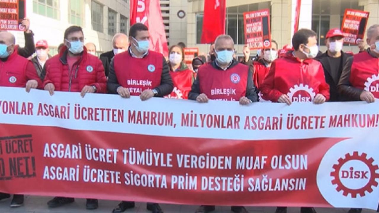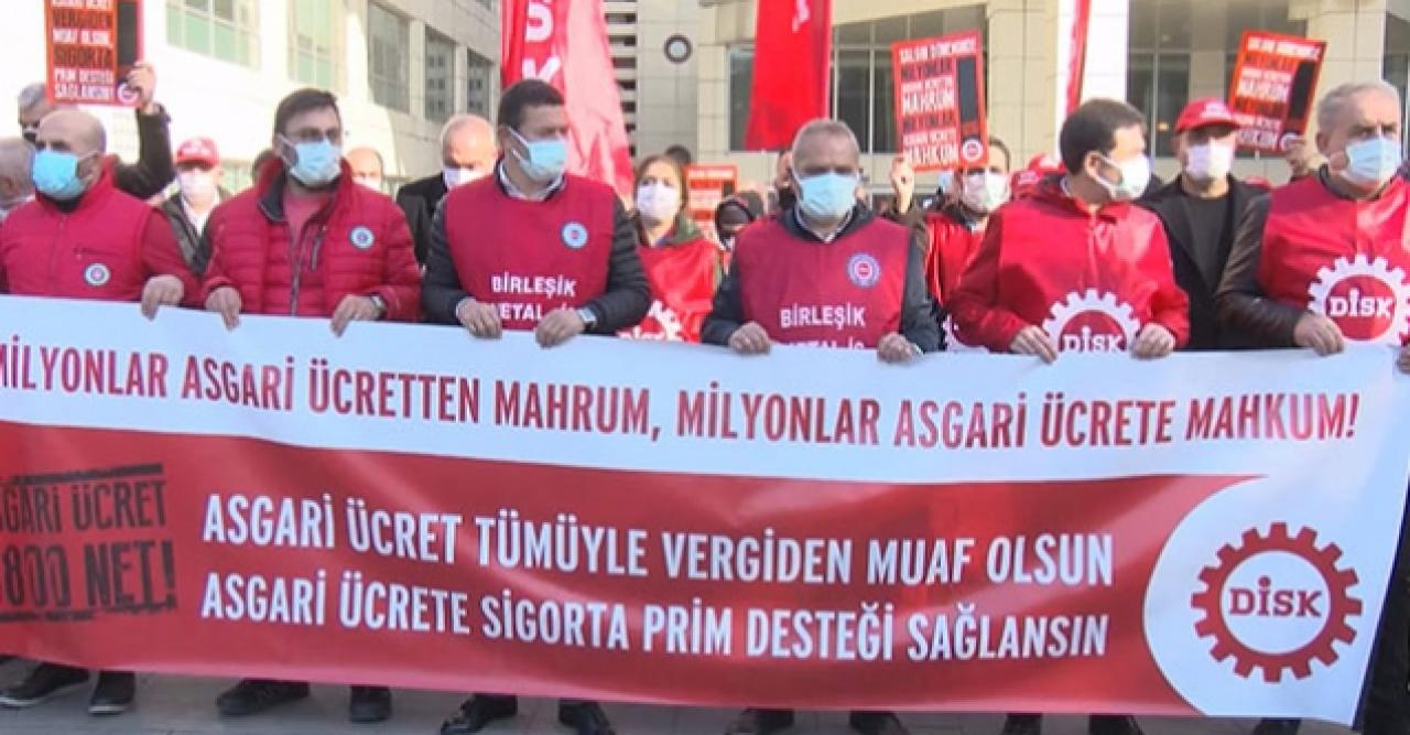 Çerkezoğlu açıklama yaparak, "2021 yılı asgari ücreti her zamankinden daha fazla önem taşımaktadır, her zamankinden daha fazla yaşamsaldır. O nedenle DİSK olarak bu en büyük ücret pazarlığında her ne kadar asgari ücret tespit komisyonu masasında olmasak da, asgari ücreti bir masa başı pazarlığı olarak görmediğimiz için alanlarda, sokaklarda, meydanlarda ve iş yerlerinde bu büyük pazarlığının, işçi sınıfının emeğinin hakkını alabildiği bir sürece dönmesi için bütün işçi arkadaşlarımızla birlikte, sendikalı, sendikasız bütün işçi arkadaşlarımızla birlikte insan onuruna yaraşır asgari ücret mücadelesini yürüteceğimizi bir kez daha ifade ediyoruz. 2021 yılı asgari ücreti net 3 bin 800 lira olmalıdır diyoruz" ifadelerini kullandı.