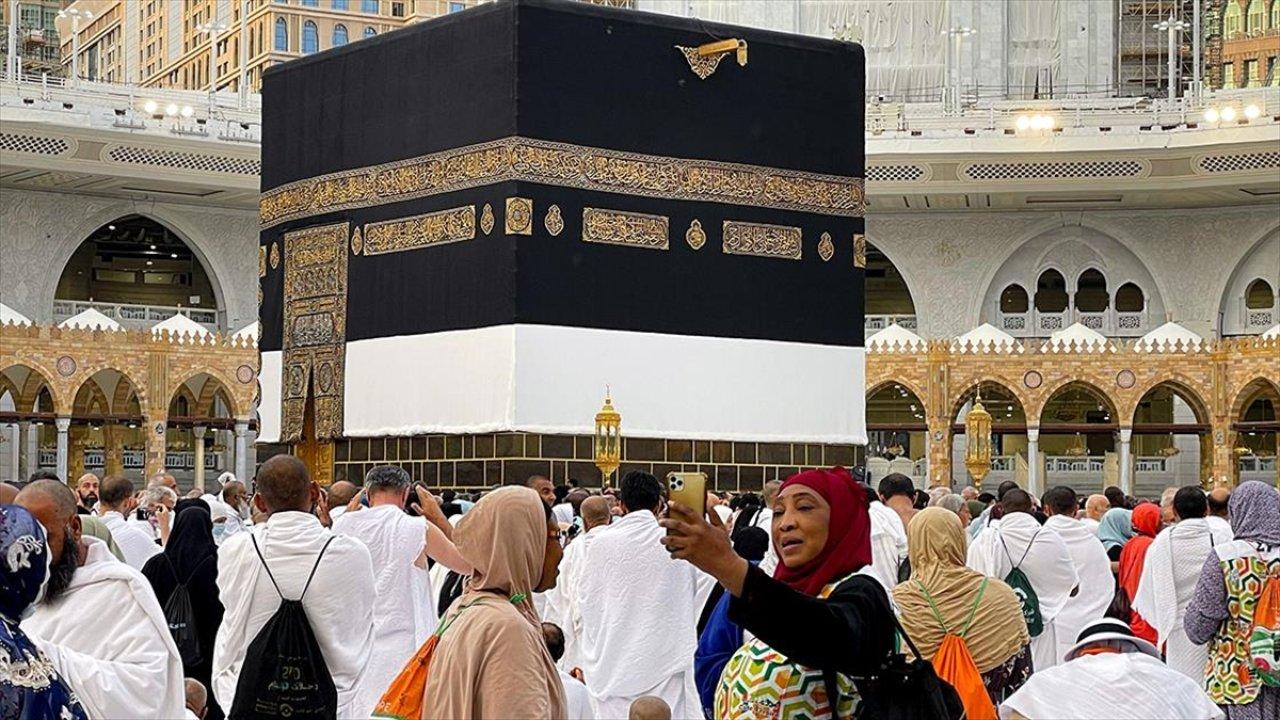 Bazı hacı adaylarının yakınlarını görüntülü arayarak veya sosyal medya hesaplarından canlı yayın açarak tavaf yapmaları dikkati çekiyor.