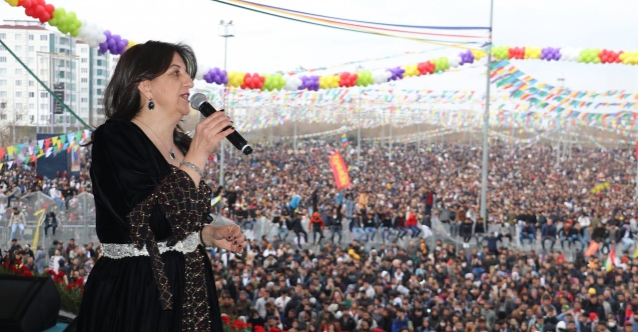 "Bugün, her yerde direnen işçilerin, emekçilerin, milyonların bayramıdır. Nevruz aynı zamanda zalimlere boyun eğmeyen mazlumların bayramıdır. Onurlu bir yaşam için mücadele eden halklarımızın bayramıdır. Herkes bu meydana iyi baksın, buradan çıkan mesajları iyi okusun. 9 yıl önce 2013'te bu meydanda bir mutabakat metni okundu. Bu metin tarihi bir çözümün yol haritasıydı. İmralı’da Öcalan’ın kaleme aldığı bu deklarasyonun, bu mektubun, ortak geleceğin birlikte kurulacağını ilan eden bir mektubun okunmasının üzerinden 9 yıl geçti. 9 yılda yaşananlar, çözüm mektubunun aciliyetini bugüne kadar yaşananlarla bizlere gösterdi. HDP ve Kürtler olarak 2013 yılında okunan mektubun arkasında olduğumuzu bir kez daha ilan ediyoruz. Ukrayna savaşı bizlere bir kez daha göstermiştir. Bunun için HDP olarak diyoruz ki büyük barışlara ihtiyaç var. Büyük barışlar sadece Türkiye’de değil, dünyanın her yerinde hayata geçmek zorundadır. Büyük barış için, halklarımızın ortak geleceği için her türlü sorumluluğu almaya hazır olduğumuzu bir kez daha ilan ediyoruz. Barışın etrafında büyük bir kenetlenmeye ihtiyaç olduğunu bir kez daha ilan ediyoruz. Türk'ü ile Kürt’ü ile Laz’ı ile Çerkez'i ile Arap’ı ile bu topraklarda yaşayan bütün halklarla birlikte büyük barışın aciliyetini bir kez daha buradan duyuruyoruz. Barış bu ülkeye, bütün ülkelere geldiği zaman, arkasından nelerin geleceğini biliyoruz. Savaş acı ve gözyaşıdır. Barış yaşamdır, gelecektir, umuttur. Büyük barışın tam zamanı, şimdi barış, hemen barış, büyük barış diyoruz" dedi.