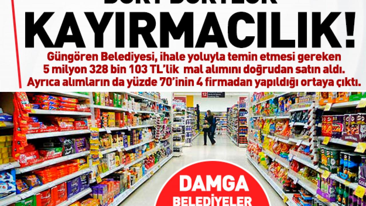 Sayıştay Başkanlığı 2017 yılı Güngören Beldiyesi denetiminde birçok usulsüzlük belirledi. Belediyenin ihale yoluyla temin etmesi gereken mal ve hizmet alımını belirli firmalardan satın alma yoluna gittiğini belirleyen Sayıştay, bu durumun saydamlığa, rekabete, eşit muameleye ve güvenirliğe gölge düşürdüğünü rapor etti. 2017 yılında toplam 5 milyon 328 bin 103 TL tutarındaki ihtiyacın doğrudan temin yöntemiyle karşılandığını belirten Başkanlık, bu alımların yüzde 70'inin belirli 4 firmadan satın alındığını tespit etti.