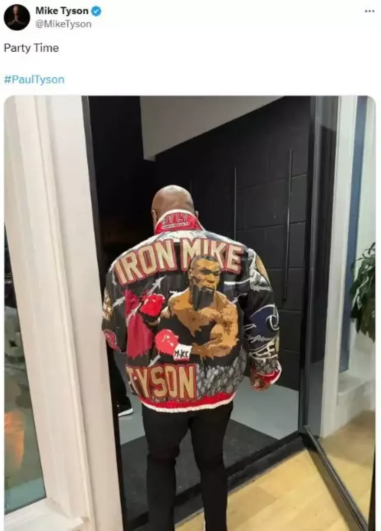 Maç öncesi ATT Stadı'na giriş yapan Mike Tyson, ceketiyle arkadan çekilmiş bir fotoğraf paylaşarak "Party Time (Parti zamanı)" notunu düştü.