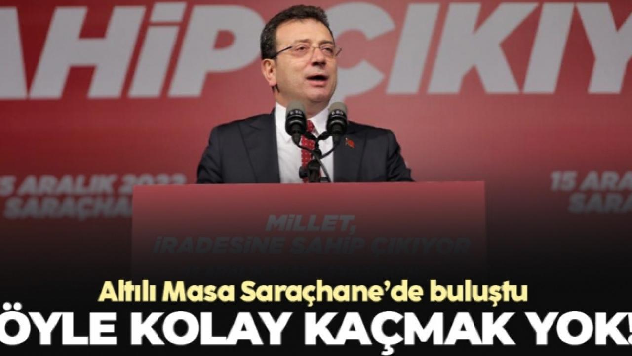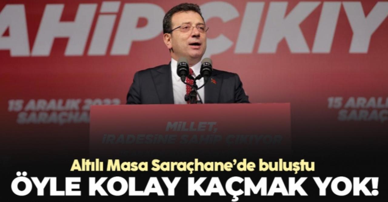 İmamoğlu konuşmasının devamında, “Kişilere, gruplara, cemaatlere, partilere, kişisel yakınlığınızın olduğu bu tarz grup ve kurumlara yakın olmayacağız, herkese eşit olacağız dedik. İstanbullular beni bunun için seçtiler. İsraf düzenine bu şekilde son verdik. Bütçemizi 16 milyon İstanbullunun hizmetine sunduk. Bir avuç insan yalan oldu yalan. Avuçlarını yaladılar. Bu sadece israf düzenine son vermekle kalmadık. Bir şey daha yaptık. İstanbul'da insaf düzeni oluşturdu. İstanbul 3.5 yıldır vicdana ve mantığa uygun şekilde yönetiliyor. Artık İstanbullunun vicdansız, adaletsiz, kısacası insafsız bir düzene tahammülü yok. Kim olursa olsun, hangi partiden olursa olsun halkın oylarıyla seçilmiş bir yöneticiyi haksız, hukuksuz biçimde görevden almak haddini bilmemektir. Altılı masanın en çalışkan neferi olacağım. Altı genel başkana hepinizin huzurunda söz veriyorum. Ben ortak aklın iradesine inanıyorum. Toplumun barış içinde, ortak bir geleceği inşa edeceğine inanıyorum. Onların dikte ettirdiği yok hükmündeki kararlardan asla korkmuyorum. Birlikte bu karanlık günleri aşacağız. Asla üzülmeyeceğiz. Asla öfkeye kapılmayacağız. Ama hep birlikte kararlı olacağız. Bu dava bana açılmış bir dava değil. Bu dava ülke davası. Bu dava adalet davası. Bu dava eşitlik davası. 2023 çok güzel olacak” dedi.