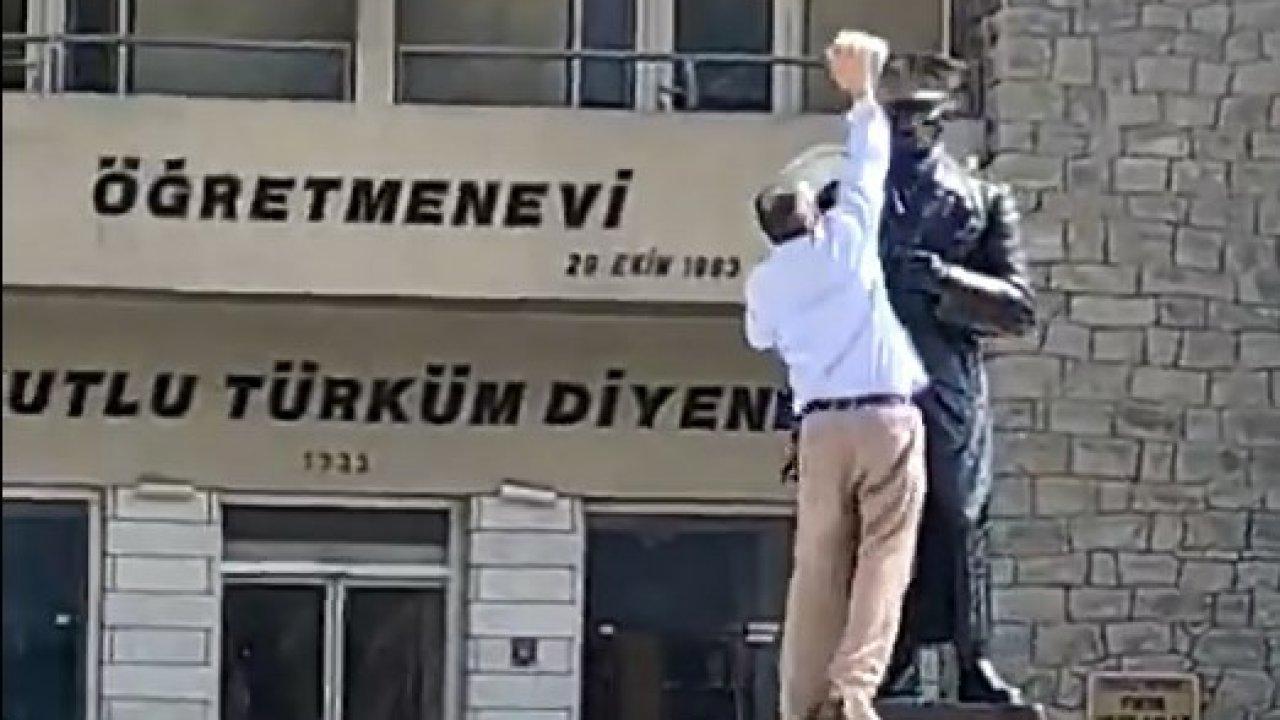 Olay, öğle saatlerinde Gazi Caddesi'nde bulunan eski öğretmenevi önünde meydana geldi. Buradaki Atatürk heykeline çıkan bir kişi, heykelin baş kısmına taşla vurmaya başladı.
