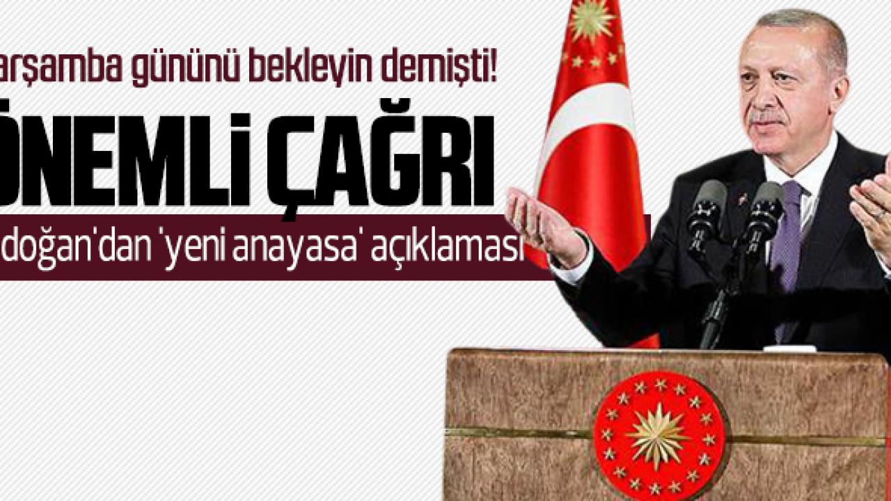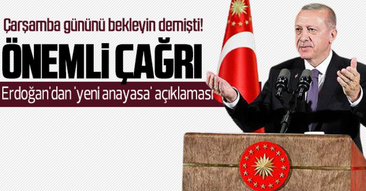 Cumhurbaşkanı Recep Tayyip Erdoğan, partisinin TBMM'deki grup toplantısında yeni anayasa çalışmaları hakkında önemli açıklamalarda bulundu. Cumhurbaşkanı Erdoğan, partilere çağrıda bulunarak ''Türkiye tarihinde ilk defa sivil anayasa hazırlama şansına sahip olmuştur. Milli iradenin gücünü yansıtacak yeni Anayasamızın, Cumhuriyetimizin 100'üncü yılı için belirlediğimiz hedefleri taçlandıracağına inanıyorum. Çağrıda bulunuyorum, gelin yeni anayasa tekliflerimizi yıl içinde hazırlamaya başlayalım ve tartışalım. Kimseyi dışarda bırakmadan bunları milletimizle paylaşalım'' dedi.