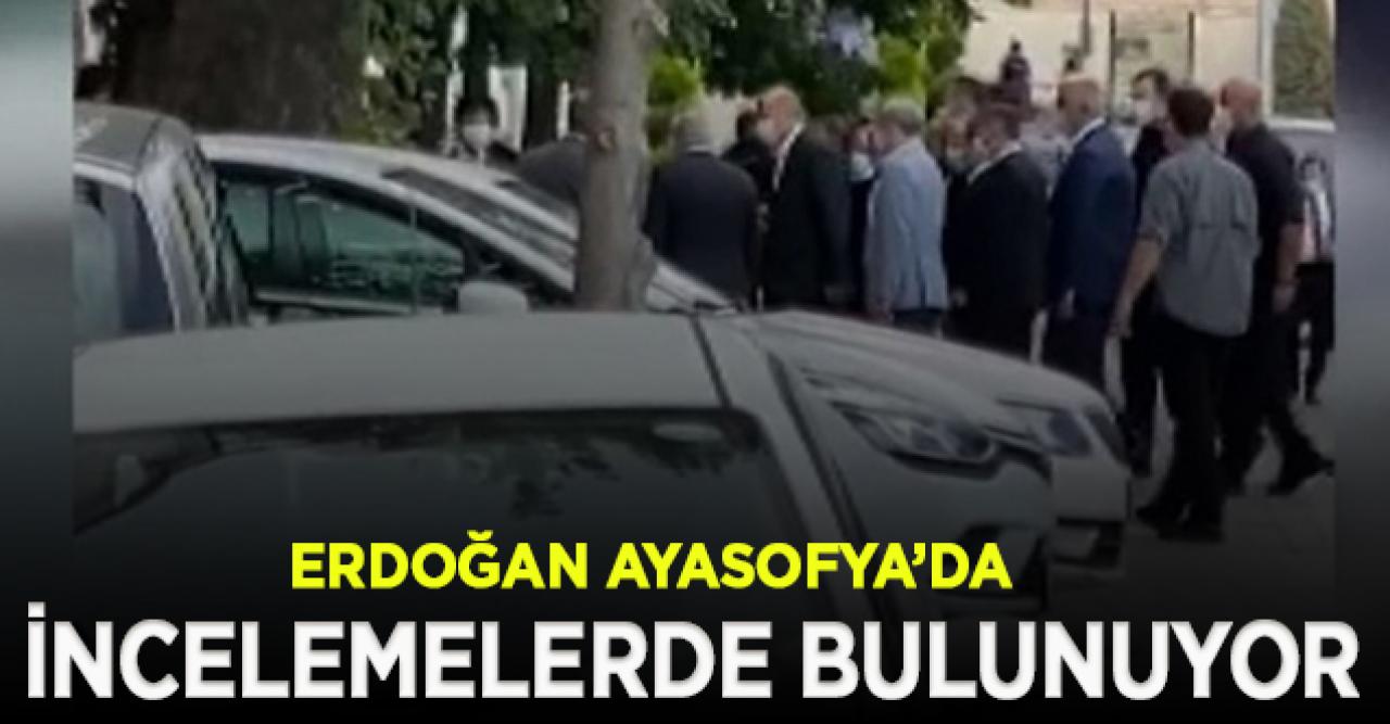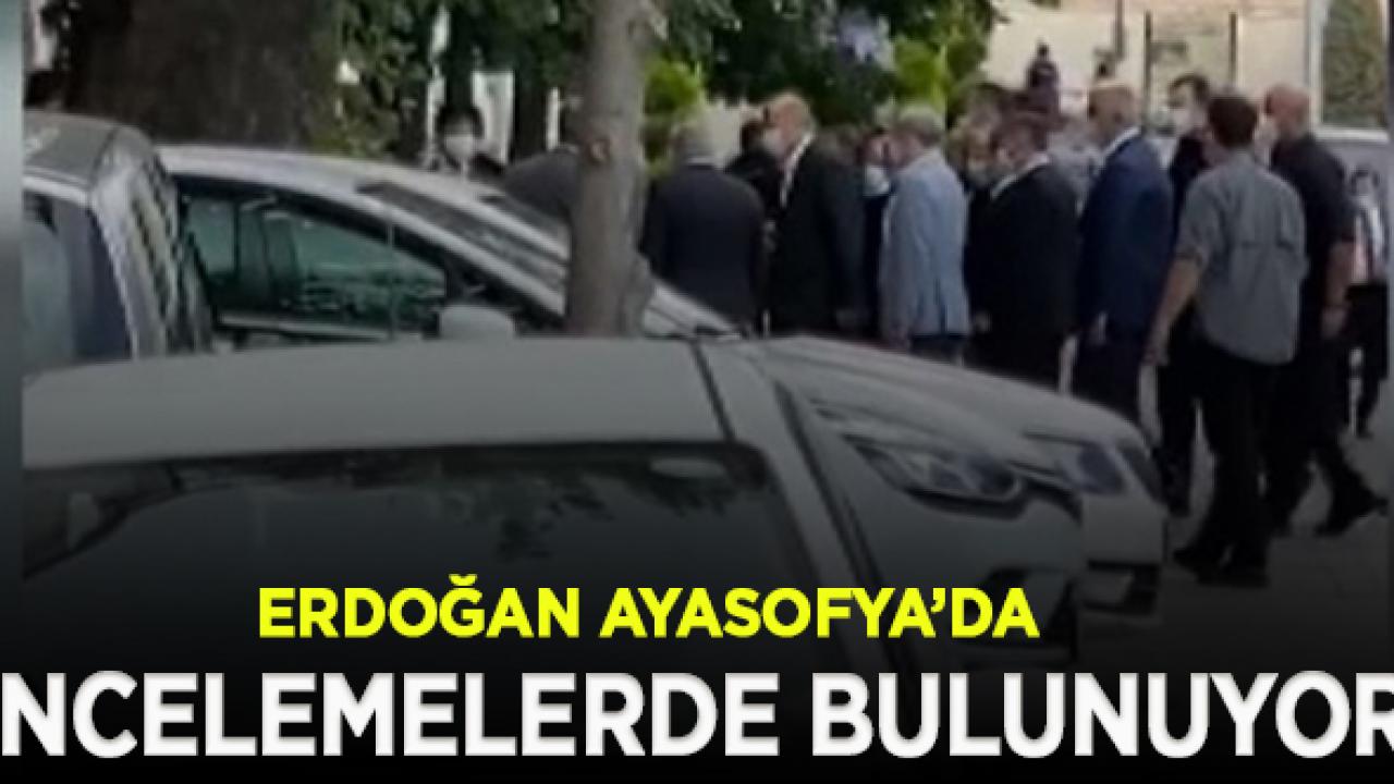 Cumhurbaşkanı Recep Tayyip Erdoğan, Ayasofya Camii'ne geldi. Cumhurbaşkanı Erdoğan, 24 Temmuz'da ibadete açılacak Ayasofya Camii'nde yapılan çalışmalar ve hazırlıklar hakkında yetkililerden bilgi alıyor. Kültür ve Turizm Bakanı Mehmet Nuri Ersoy ve Diyanet İşleri Başkanı Ali Erbaş da Erdoğan'a eşlik ediyor.