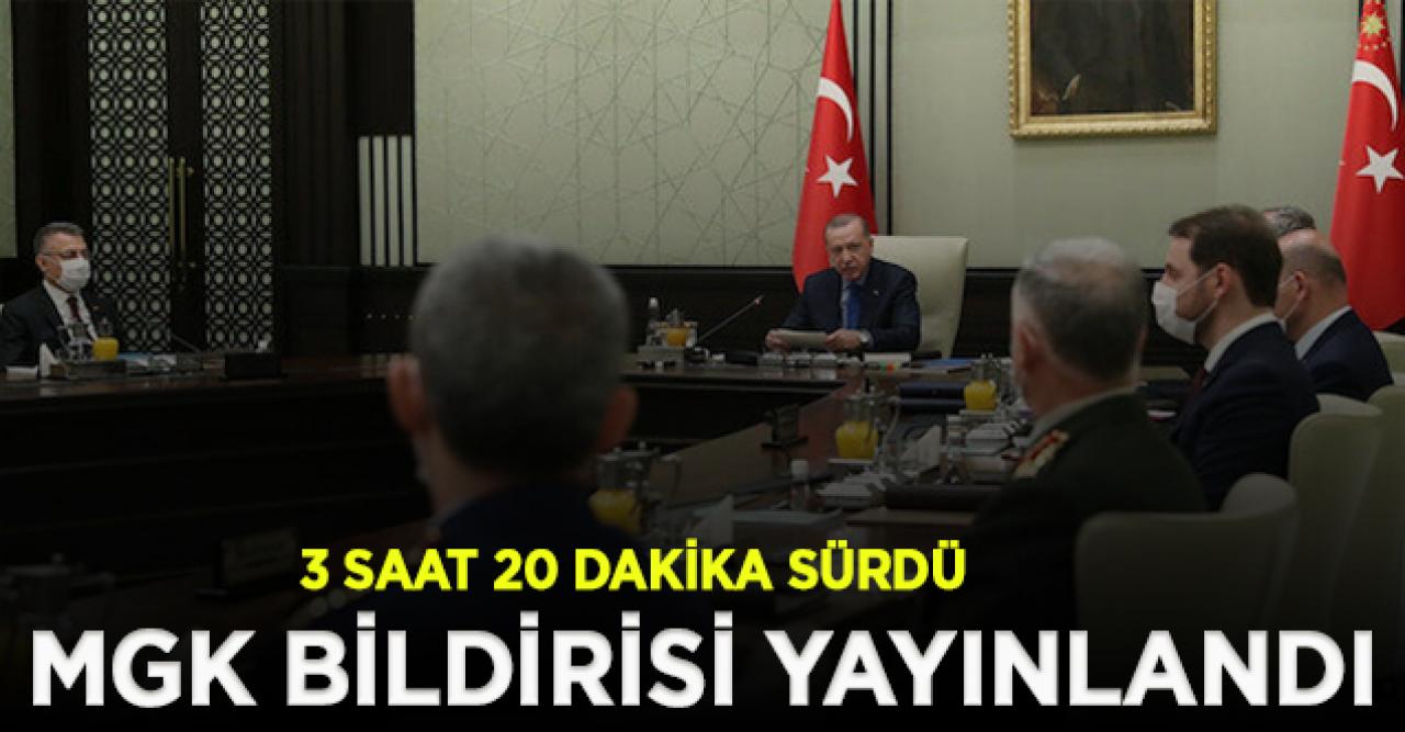 Cumhurbaşkanı Recep Tayyip Erdoğan başkanlığındaki Milli Güvenlik Kurulu (MGK) toplantısı sona erdi. Cumhurbaşkanlığı Külliyesi'nde düzenlenen toplantı, 3 saat 20 dakika sürdü.