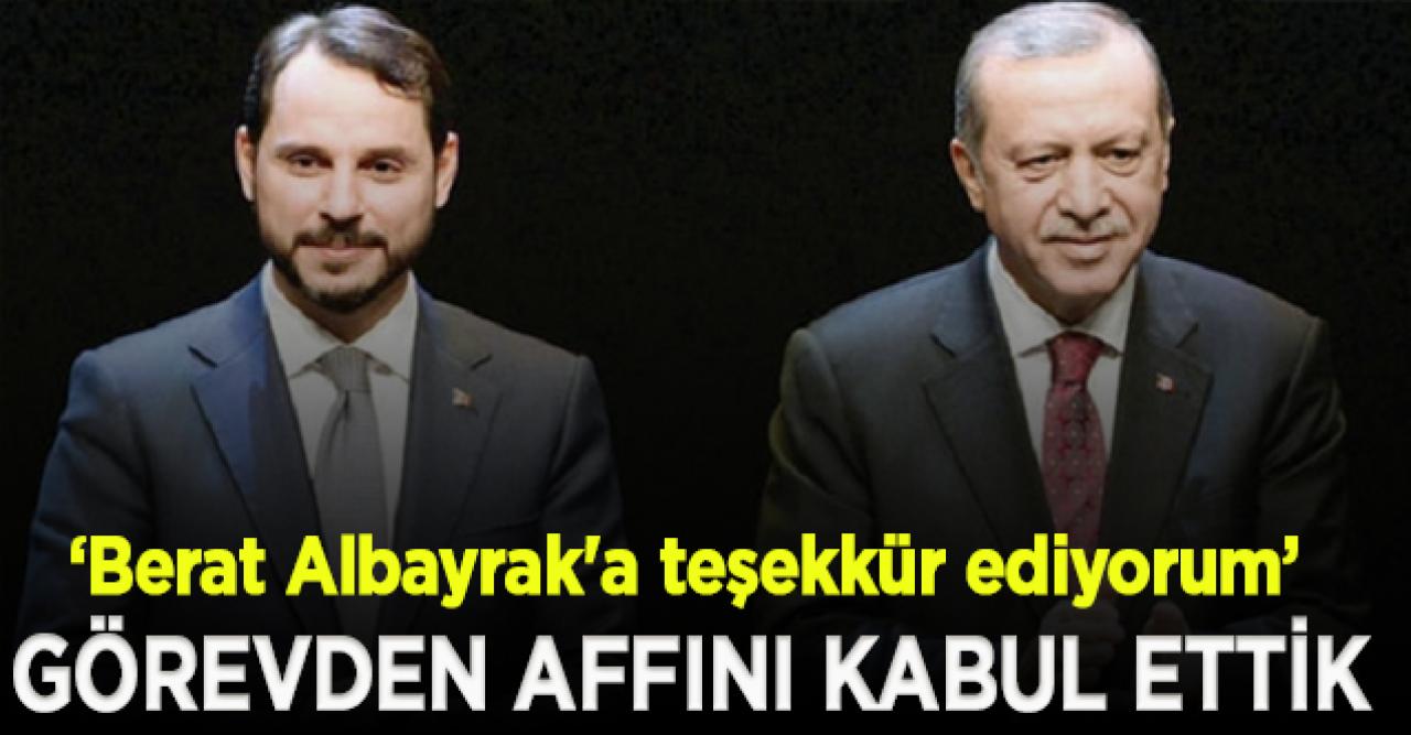 Ekonomiyle ilgili açıklamalarına devam eden Erdoğan, geçen hafta sağlık sorunları nedeniyle görevinden istifa eden Berat Albayrak için, "Ülkemize önemli hizmetler veren Berat Albayrak'a şahsım milletim adına teşekkür ediyorum. Bu süreç içerisinde özellikle de iki sismik araştırma, 3 tane de sondaj gemisini ülkemize kazandırması da finans yönetimi bakımından önemli bir başarıydı. Kendisi sağlık sorunları sebebiyle vazifesinden affını istedi. Biz de görevden affını kabul ettik.Bu vesileyle sayın Lütfi Elvan'a da başarılar diliyorum." dedi.