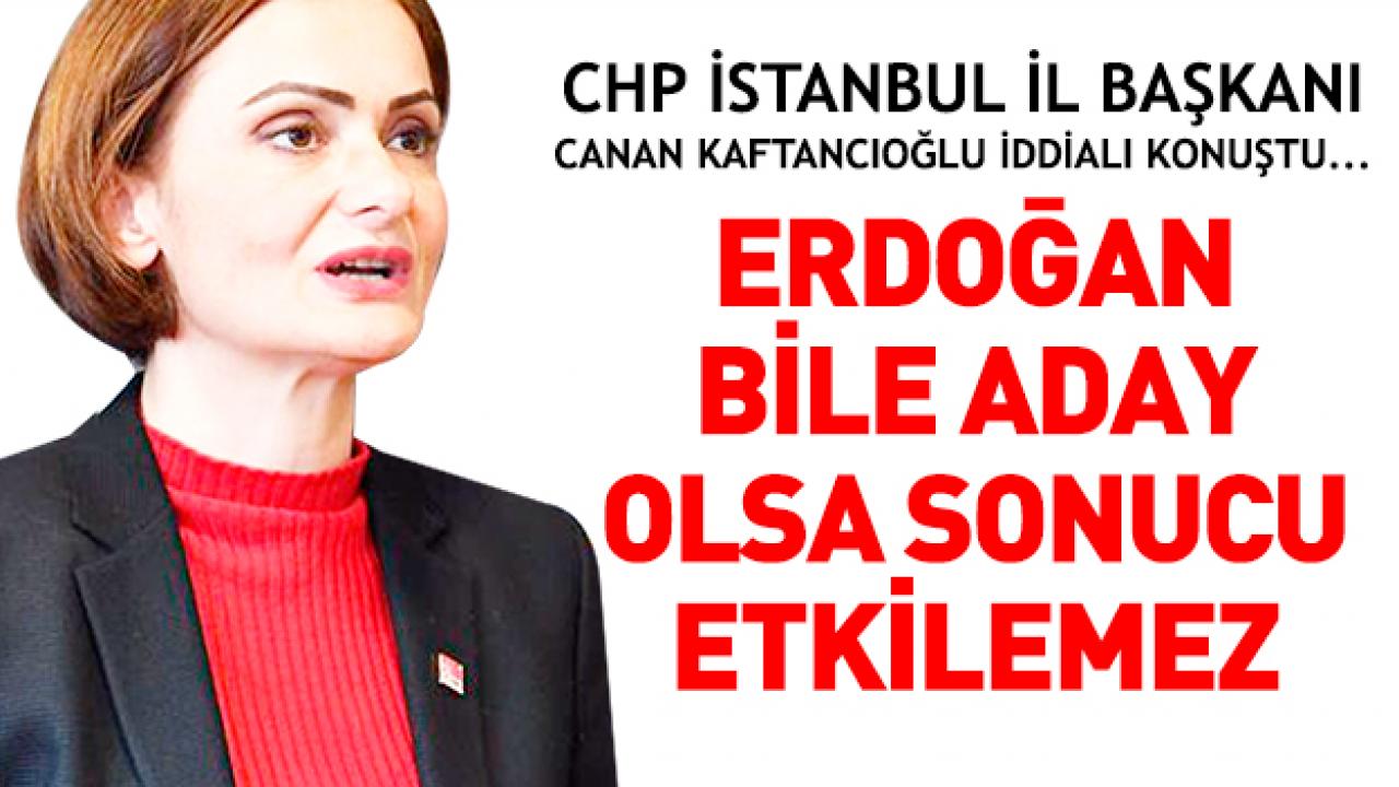 CHP İstanbul İl Başkanı Canan Kaftancıoğlu AK Parti'ye yerelde oy verenlerin yüzde 17'sinin 'başka partiye oy verebilirim' dediğini belirterek, “Tayyip Erdoğan bile olsa sonuca etkisi olmayacak” dedi.