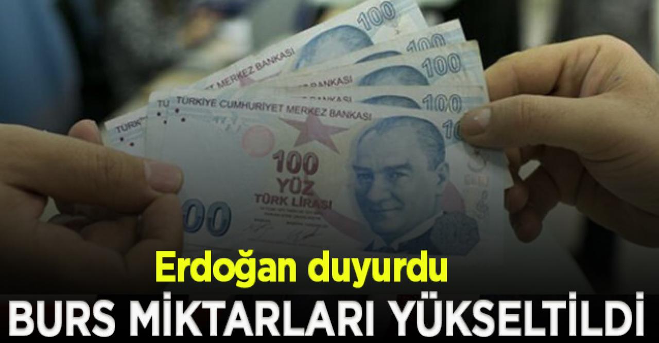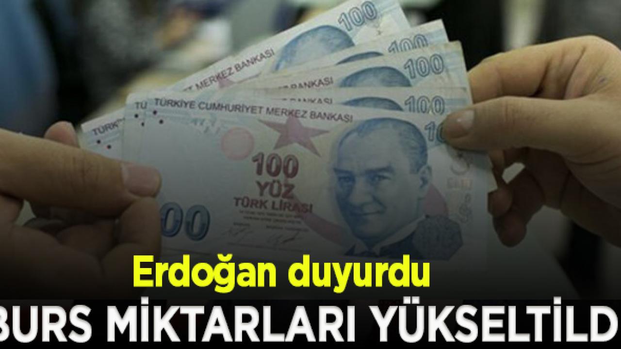 Yeni yılla birlikte öğrenim kredilerini yükselteceklerini aktaran Erdoğan, "Buradan öğrencilerimize bir haberi duyurmak istiyorum. Burs miktarlarını 550 liradan 650 liraya çıkarıyoruz. 1100 lira olan yüksek lisansı da 1300 liraya çıkarıyoruz. Doktorada da 1650 liradan 1950 liraya çıkarıyoruz" ifadelerini kullandı.
