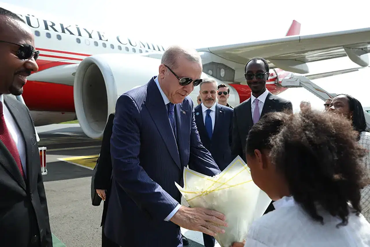 Cumhurbaşkanı Erdoğan, Addis Ababa’daki temasları kapsamında Ulusal Saray’da resmi törenle karşılandı. Saraya gelişinde aracından inerken Etiyopya Başbakanı Abiy Ahmed tarafından karşılanan Erdoğan, tören alanındaki yerini aldı. Törende iki ülkenin milli marşları çalındı. Erdoğan ve Ahmed, marşların ardından tören kıtasını selamladı. Heyetlerin takdiminin ardından iki lider tokalaşarak basın mensuplarına poz verdi. Resmi törenin ardından Cumhurbaşkanı Erdoğan ile Başbakan Abiy Ahmed baş başa görüşmeye geçti.
