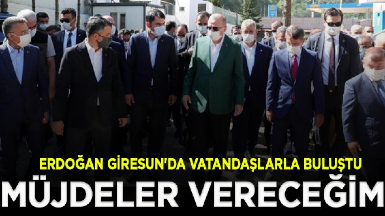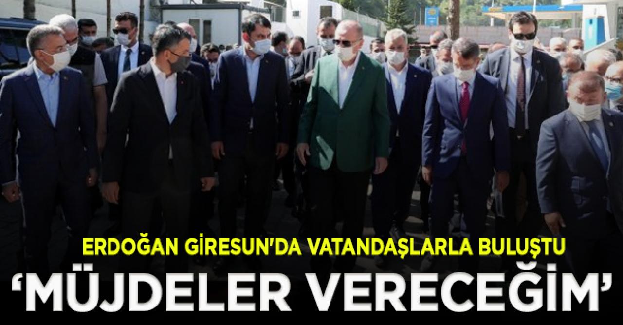 Erdoğan'a İçişleri Bakanı Süleyman Soylu ve Çevre ve Şehircilik Bakanı Murat Kurum brifing verdi. Bölgedeki vatandaşlarla sohbet eden Erdoğan, sel felaketinin yaşandığı bölgede incelemelerde bulundu.VATANDAŞLARLA SOHBET ETTİCumhurbaşkanı Erdoğan, Cumhurbaşkanlığına ait uçakla Ordu-Giresun Havalimanı'na iniş yaptı. Çok sayıda askeri ve emniyet mensubu havalimanı çevresinde geniş çaplı güvenlik önlemi alırken; Sahil Güvenlik gemisi denizden, helikopterler ise havadan güvenlik çemberi oluşturdu. Erdoğan, helikopter ile sel felaketinin yaşandığı Giresun'un Dereli ilçesinden havadan incelemelerinin ardından, vatandaşlarla sohbet etti.