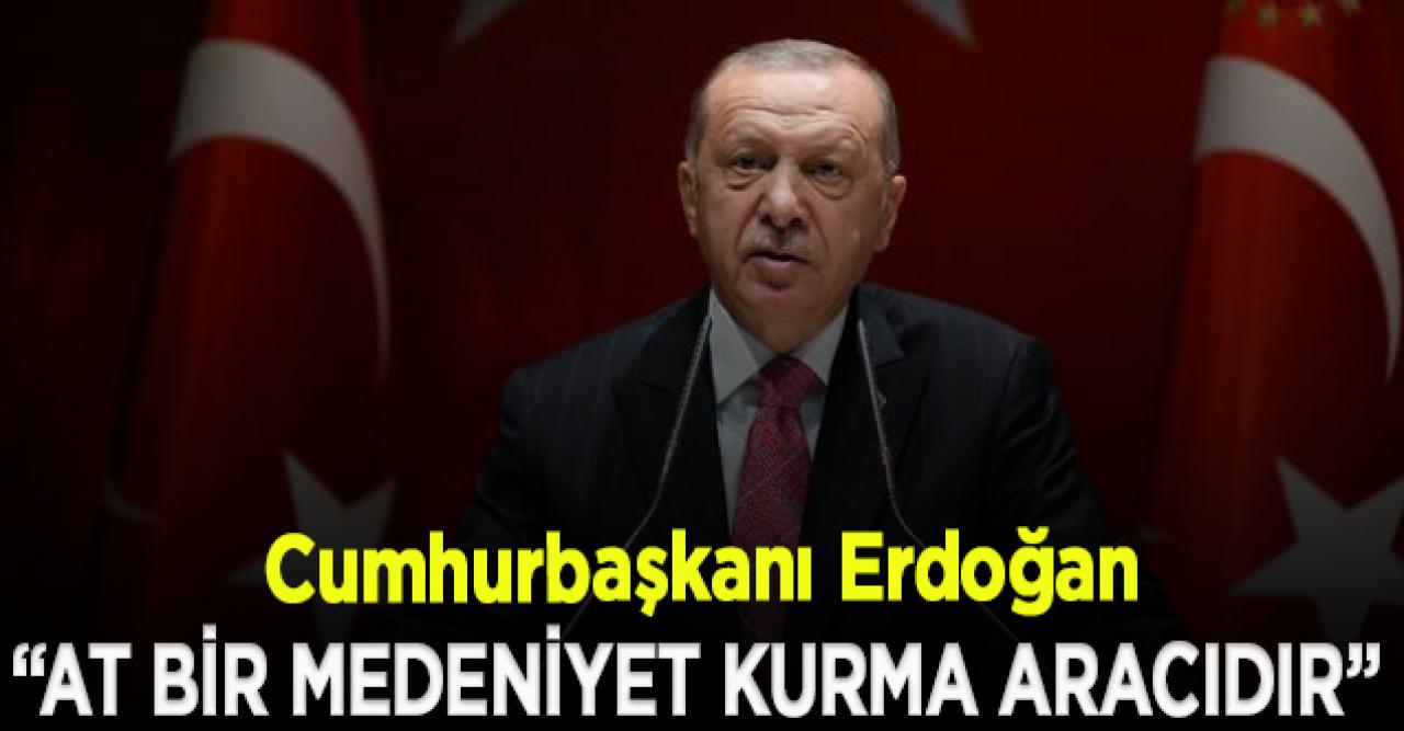 Erdoğan, at, ok ve güreş spor dallarının dahi binlerce yıllık Türk tarihini tek başlarına anlatmaya yetecek zenginliğe sahip olduğunu söyleyerek, Divan-u Lugati’t-Türk’te at ile ilgili tam 180 tabirin yer aldığına dikkat çekti. Peygambere miraç yolculuğunda 'Burak' adlı atın eşlik ettiğine de değinen Erdoğan, "Tarihte hangi toplum atla tanışmış, kaynaşmış, bütünleşmişse hemen arkasından büyüme, genişleme, özellikle bu döneme girmiştir. Bu bakımdan at bir medeniyet kurma aracıdır. Osmanlı devlet ile birlikte sarayın at ihtiyacını karşılamak için Çiftlikat-ı Hümayun’u da kurmuştur. Cirit başta olmak üzere at ile ilgili pek çok oyunun yer aldığı geleneksel sporlarımızın yeniden canlanması bizi memnun ediyor. Tarihimizin ve medeniyetimizin bu önemli sembolüne sahip çıkmak boynumuzun borcudur" dedi.