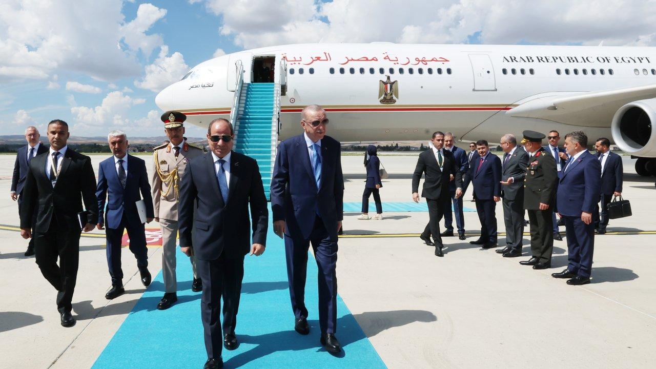 Cumhurbaşkanı Erdoğan, Mısır Cumhurbaşkanı Abdülfettah es-Sisi'yi, Esenboğa Havalimanı'nda karşıladı. Erdoğan'a, Dışişleri Bakanı Hakan Fidan ve Ankara Valisi Vasip Şahin eşlik etti. Cumhurbaşkanı Erdoğan, uçaktan inen Sisi ile Esenboğa Havalimanı Büyük Şeref Salonu'nda bir araya geldi.