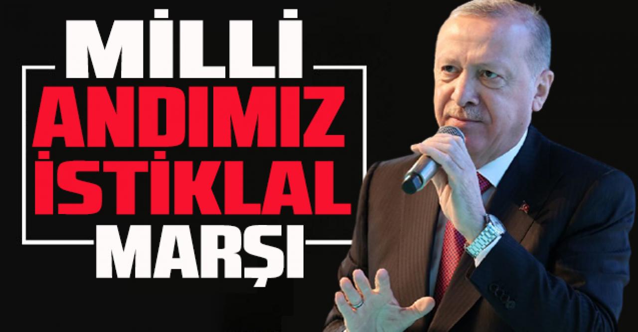 Erdoğan, konuşmasının sonunda andımız tartışmalarına son noktayı koydu. Erdoğan, "Milli andımız olan İstiklal Marşımız bize niçin birlik olmamız gerektiğini anlatıyor. İstiklal Marşımızdaki ruhu hep birlikte güçlendirmemiz büyük önem taşıyor" diye konuştu.