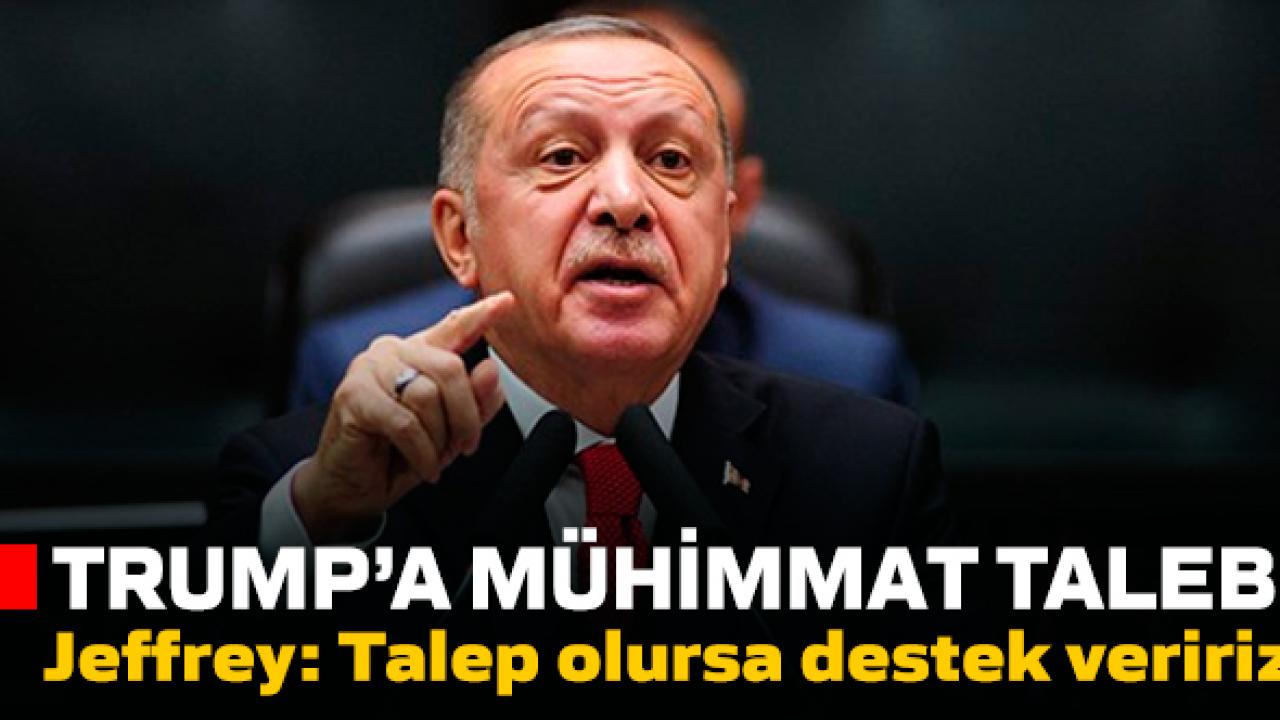 Erdoğan, ABD'nin Suriye Özel Temsilcisi James Jeffrey'in "Türkiye'nin mühimmat konusunda bir talebi olursa biz bu konuda destek veririz" sözlerinin hatırlatılması üzerine, "Ben Sayın Trump'a bu tür taleplerimizi ilettim" dedi.