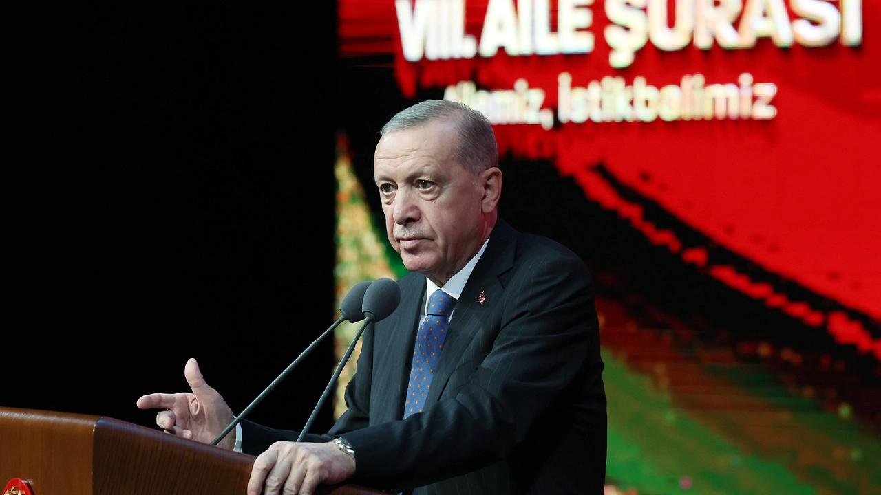 Erdoğan, evlenme yaşının sürekli yükseldiğini, boşanma oranlarının da her geçen yıl daha da arttığına dikkat çekerek, "Ortalama çocuk sayısı ise günden güne düşüyor. Yani boşuna "en az 3 çocuk" demiyoruz. Çünkü bu toplumun özellikle ihtiyacı var. Detayına burada giremem. Ama bizim şu anda Türkiye olarak nüfusumuzun 85 milyon olması yeterli değil. Çok daha fazla bir nüfusa ihtiyacımız var. Avrupa ülkeleri başta olmak üzere dünyamız giderek yaşlanıyor. Aile gibi güvenli bir sığınağa sahip olmayan toplumlarda intihar oranları, bağımlılık, uyuşturucu kullanımı ve diğer sorunlar almış başını gidiyor. Öte yandan aile kurumuna, toplum hayatına ve bireyin ruh sağlığına yönelik tehditler sadece bunlarla da maalesef sınırlı değil. Son dönemde aileyi hedef alan en büyük tehdit, küresel güç odaklarının teşvik ettiği cinsiyetsizleştirme politikalarıdır. Uluslararası kimi şirketlerin, örgütlerin, markaların ve kurumların da destek verdiği sapkın akımların hedefinde bizatihi aile kurumu vardır. Meselenin daha vahim tarafı bunun kişisel bir yaşam biçimi tercihinden ziyade küresel bir dayatma haline dönüşmesidir. En küçük eleştirilerin dahi susturulduğu, itiraz edenlere adeta hayat hakkı tanınmadığı, insan fıtratını ve ailevi değerleri savunmanın imkansız hale geldiği, tepki gösterenlerin ekonomik, siyasi ve diplomatik olarak baskılandığı; hasılı bir avuç azgın azınlığın milyarlarca insanı esir almaya çalıştığı küresel bir zorbalıkla karşı karşıyayız" dedi.