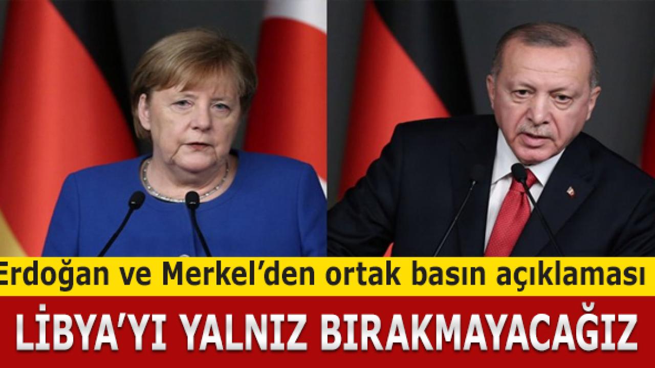 Erdoğan, “Libyalı kardeşlerimizi bu zor günlerinde yalnız bırakmamakta kararlıyız. Ulusal Mutabakat Hükümetine destek vermek, Birleşmiş Milletler Güvenlik Konseyi'nin 2259 sayılı kararı gereğince bir tercih değil yükümlülüktür. Türkiye ve Almanya olarak sorunların diyalog yoluyla çözümüne öncülük veriyor, taraflara sağduyu ve aklıselim çağrısında bulunuyoruz. Burada biz Sarrac'ı yalnız bırakmayacağız, kendilerine elimizden gelen desteği vermekte kararlıyız. Askerimiz orada eğitim çalışmalarına destek verecek. Türkiye'nin Libya'daki mazisi ve onların da yaptıkları davet, böyle bir hakkı doğurur. 55 maddeyi sözde kabul etmek başka bir şey ama altına imzayı koymak başka, Hafter henüz buna imzayı koymuş değil. Terör noktasında herhangi bir tanınırlığı olmayan kişiye değil, Sarrac'a ve ordusuna destek veriyoruz. Hafter'e desteklerin arkasında Abu Dabi yönetimi var, Mısır var. Bunlar silah desteğini veriyorlar ve Wagner yine bu işin arkasında var. Bütün bunlar olurken 500 yıllık maziye sahip olan Türkiye'yi Libya'ya davet eden bu dostlara bizim 'hayır' dememiz zaten mümkün değildi" diye konuştu. Cumhurbaşkanı Erdoğan, “Bölgesel konularda Almanya ile diyaloğu güçlendirilerek devam ettireceğiz. İran ve Irak'ta da son dönemde gerilimin arttığını görüyoruz. Irak'ın yeni bir kaos ve kargaşa iklimine sürüklenmesine izin verilmemelidir" şeklinde konuştu.