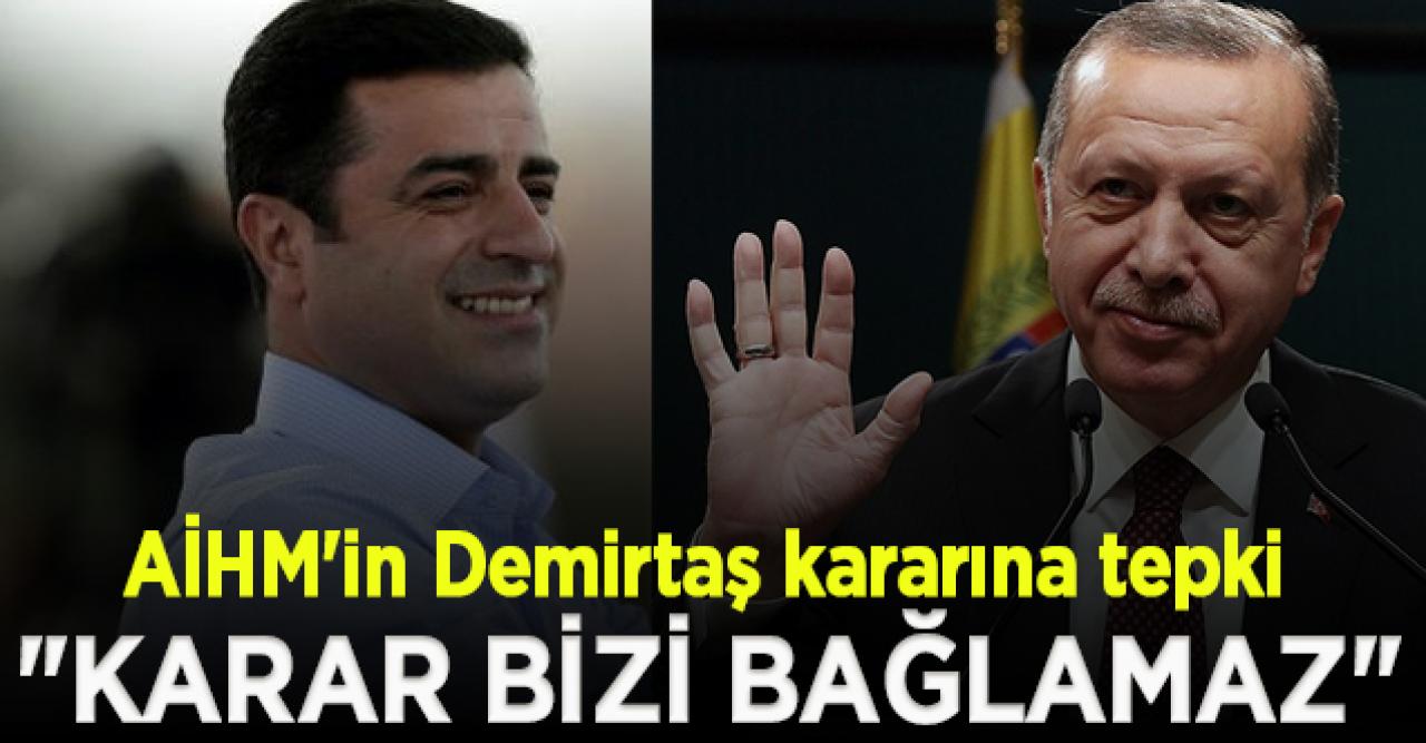 Kararı dün de eleştiren Cumhurbaşkanı Erdoğan, "AİHM terörle ilgili Türkiye'den giden her kararı onaylıyor. Daha kendi mahkemelerimizden bir karar çıkmadı. İç hukuk yolları tüketilmeden bu kararı alıyorlar. Türkiye aleyhine hareket ediliyor. Kendi adamlarını koruyorlar. Bu karar bizi bağlamaz" dedi.