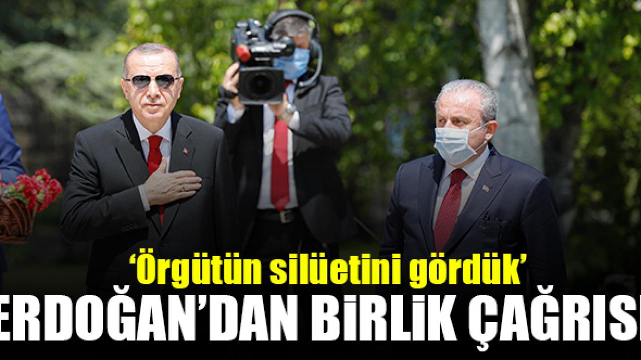 "15 Temmuz'un 4'üncü yıl dönümünde, o büyük destanın seneyi devriyesinde buradan samimi bir çağrıda bulunmak istiyorum" ifadelerini kullanan Erdoğan, "Yüce Meclis'in çatısı altında görev yapan, kalbi millet ve memleket sevdasıyla yanıp tutuşan herkesi büyük ve güçlü Türkiye davamıza destek olmaya davet ediyorum. Gelin şehitlerimizin emanetine hep beraber sahip çıkalım, gelin bu ülkeyi 2023 hedeflerine birlikte ulaştıralım, gelin 2023 ve 2071 vizyonumuzu beraber inşa edelim. Gelin Türkiye'yi aydınlık yarınlara hep birlikte taşıyalım. Bunu başardığımızda Allah'ın izniyle, ülkemizin önünü kesebilecek, milletimizi hedeflerine ulaştırmaktan alıkoyacak hiçbir engel yoktur" açıklamasında bulundu.
