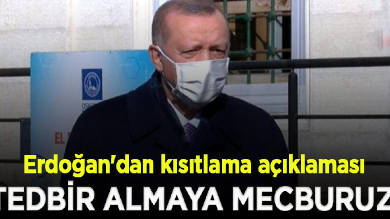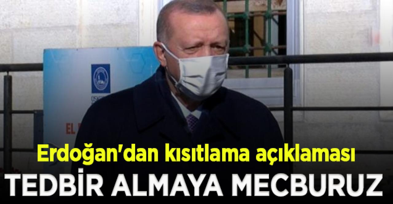 Cumhurbaşkanı Recep Tayyip Erdoğan, cuma namazı sonrasında açıklamalarda bulundu. Koronavirüs kısıtlamalarıyla ilgili konuşan Erdoğan "Bu tedbirleri almaya mecburuz ve alacağız" dedi.