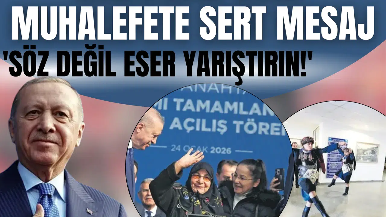 Erdoğan, ana muhalefeti sert sözlerle eleştirerek, deprem sonrası yapılan konutlar hakkında “Bunlar enkazın altında kalır, evleri inşa edemez” diyenleri hatırlattı ve “Biz eserlerimizle konuşuyoruz, laf değil hizmet yarıştırın” ifadelerini kullandı.