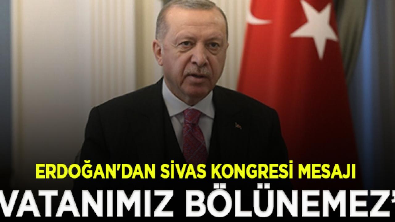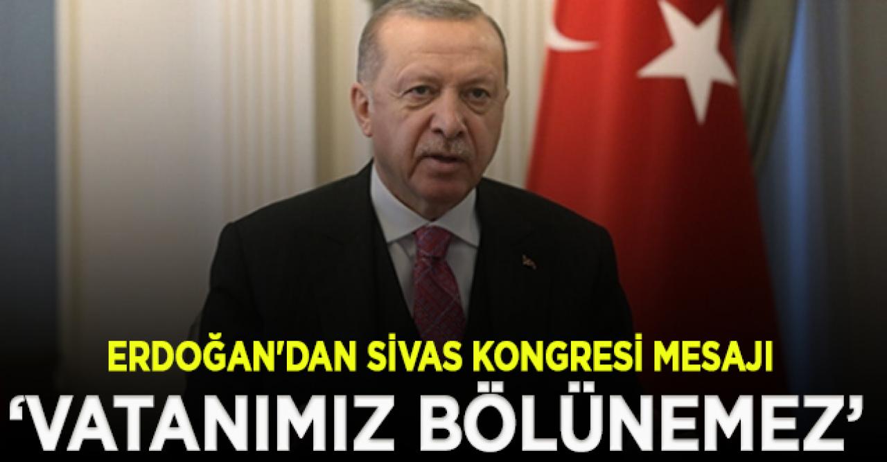Sivas Kongresi'nin 101. yıl dönümü ile ilgili mesaj yayımlayan Cumhurbaşkanı Erdoğan 'Sivas Kongresi'nin 101. yıl dönümünde ifade ediyoruz ki milletimiz, bu cennet vatanı bir bütün olarak koruyacak ve asla böldürtmeyecektir' dedi.