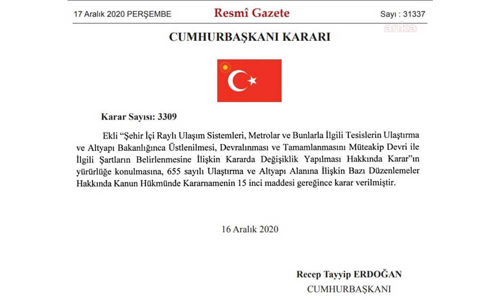 Cumhurbaşkanlığı kararı ile Çamlıca Camii’ne giden raylı sistem hattının yapımı İBB’den alınıp Ulaştırma ve Altyapı Bakanlığı’na verildi.