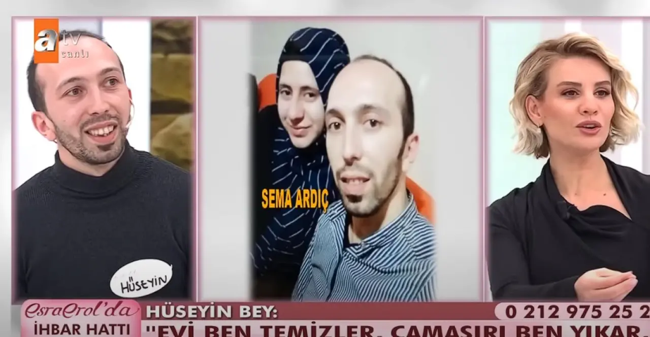 Zonguldak’tan Esra Erol’da programına katılan 28 yaşındaki Hüseyin Ardıç, eşi Sema ile severek ve kaçarak evlendiğini ancak zamanla ilişkinin büyük sorunlara sahne olduğunu anlattı. Hüseyin, evlenmeden önce ailesiyle yaşadığını ve eşine bunu açıkça söylediğini belirtti. Her şeyin düğüne kadar iyi gittiğini ama düğün sonrası Sema’nın ailesine olan bağı ve ev işlerini yapmaması gibi nedenlerle evde gerginliğin arttığını söyledi.