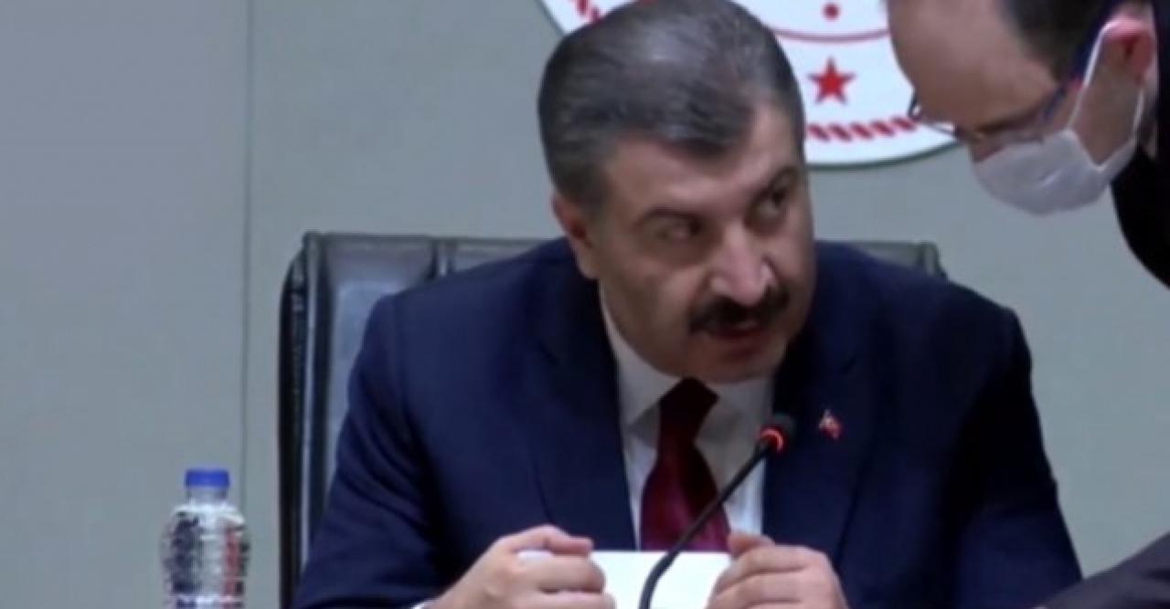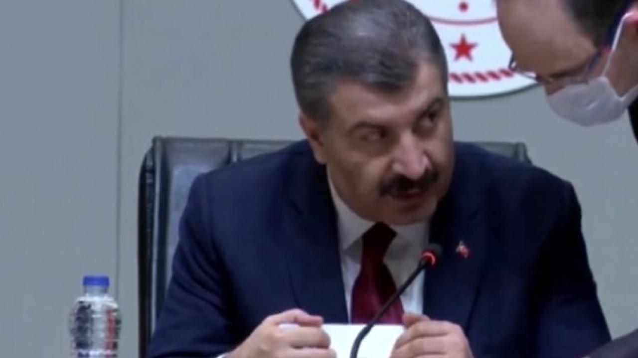 Sağlık Bakanı Fahrettin Koca, Bilim Kurulu Toplantısı'nın ardından açıklama yapmaya hazırlanırken, kulağına eğilen görevliye "Bana yaklaşma" diyerek uyarması sosyal medyada gündem oldu.