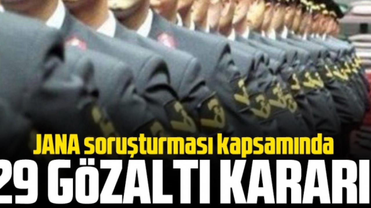 Ankara Cumhuriyet Başsavcılığınca FETÖ/PDY terör örgütüne yönelik yürütülen 2012 yılı Jandarma Astsubaylık Sınavı (JANA) soruşturması kapsamında, 29 şüpheli hakkında gözaltı kararı verildi.