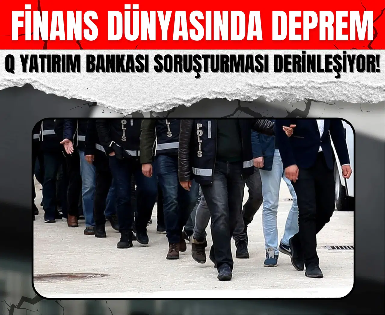 İstanbul Cumhuriyet Başsavcılığı, Q Yatırım Bankası’na yönelik "tefecilik" ve "suçtan kaynaklanan malvarlığı değerlerini aklama" suçlamalarıyla yürüttüğü soruşturma kapsamında hakkında gözaltı kararı verilen 9 kişiden 5’i tutuklandı. Diğer 4 şüpheli hakkında ise adli kontrol kararı verildi.