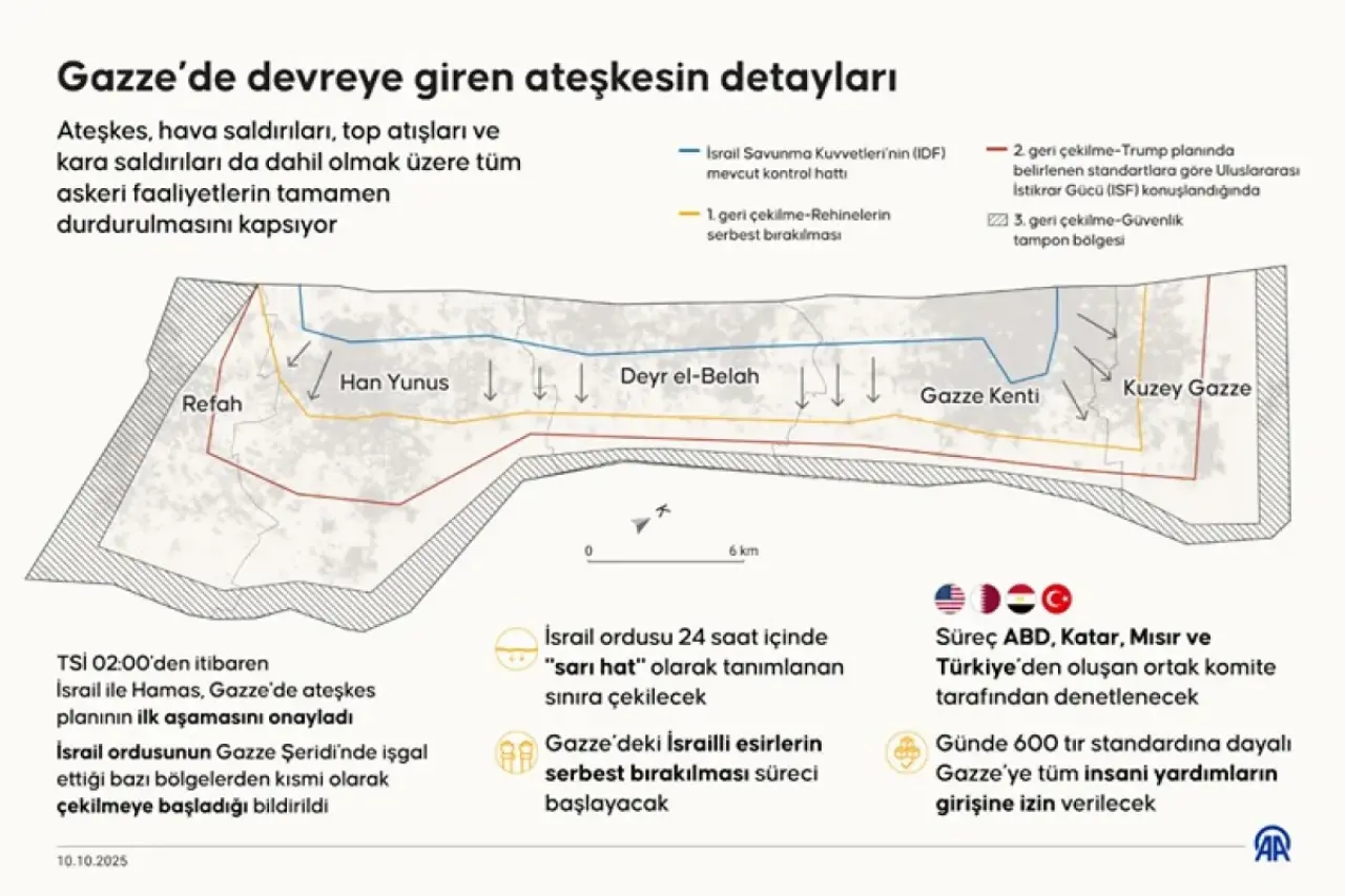 Türkiye'nin de katılımıyla Gazze'de ateşkesi sağlayan ve yürürlük sürecine ilişkin gelişmelerin izlendiği anlaşmanın ayrıntıları ortaya çıktı.