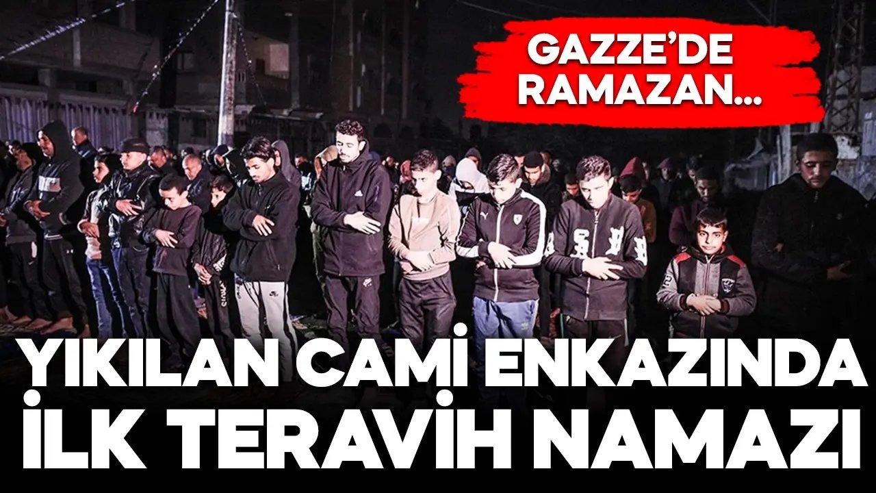 İsrail saldırısı nedeniyle yıkılan Faruk Camii yerleşkesinde ibadet edilemiyor. Soğuk havaya rağmen yüzlerce Filistinli, teravih namazı için caminin enkazının bulunduğu alana geldi.
