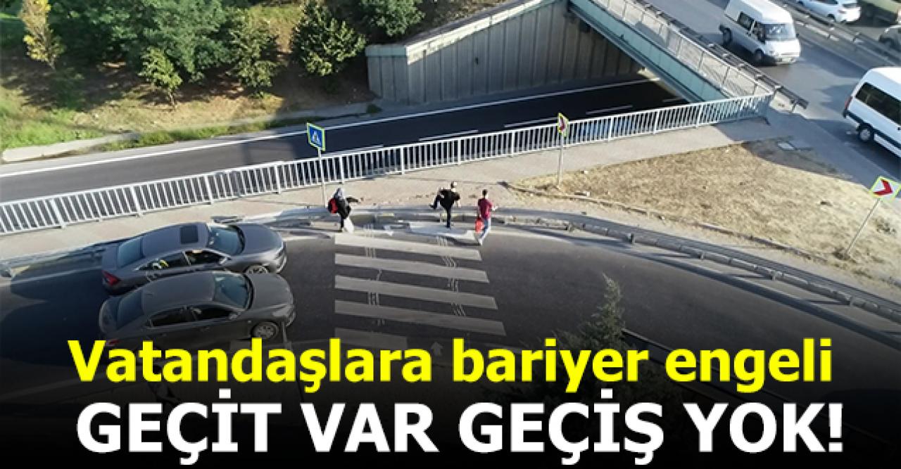 Küçükçekmece İkitelli'de bulunan bir yaya geçidinden geçmek isteyen vatandaşlar bariyer engeliyle karşılaşıyor. Araç trafiğinin yoğun olduğu yolda yaya geçidini kullanmak isteyenler bariyerlerin üzerinden atlayarak yollarına devam edebiliyor