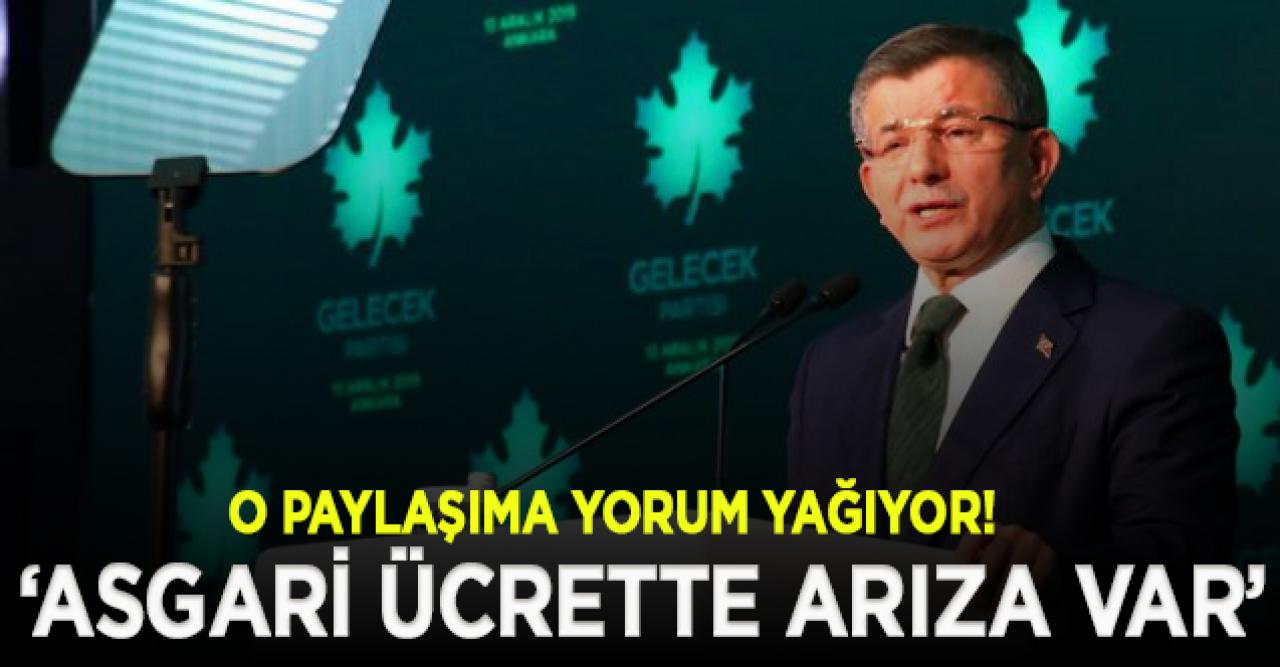 Eski Başbakan Ahmet Davutoğlu'nun Genel Başkanı olduğu Gelecek Partisi, sosyal medya üzerinden paylaştığı video ile gündem oldu. Sözkonusu paylaşımda. "Asgari ücrette arıza var" hashtag'iyle yapılan paylaşımda asgari ücretlinin maaşında yapılan kesintiye tepki gösterildi. Paylaşıma sosyal medya kullanıcıları tarafından yorum yağdı.