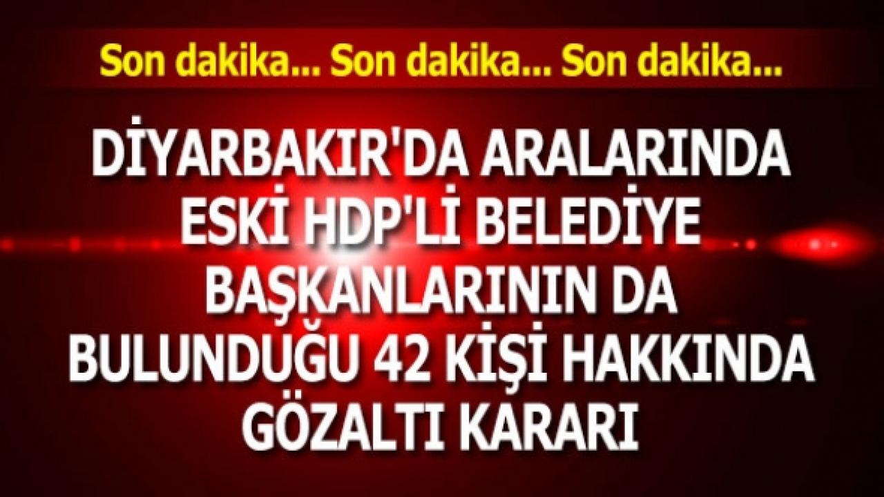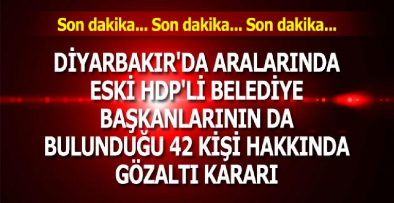 Diyarbakır'da aralarında görevden alınan eski HDP'li belediye başkanlarının da bulunduğu 42 kişi hakkında gözaltı kararı çıkarıldı.