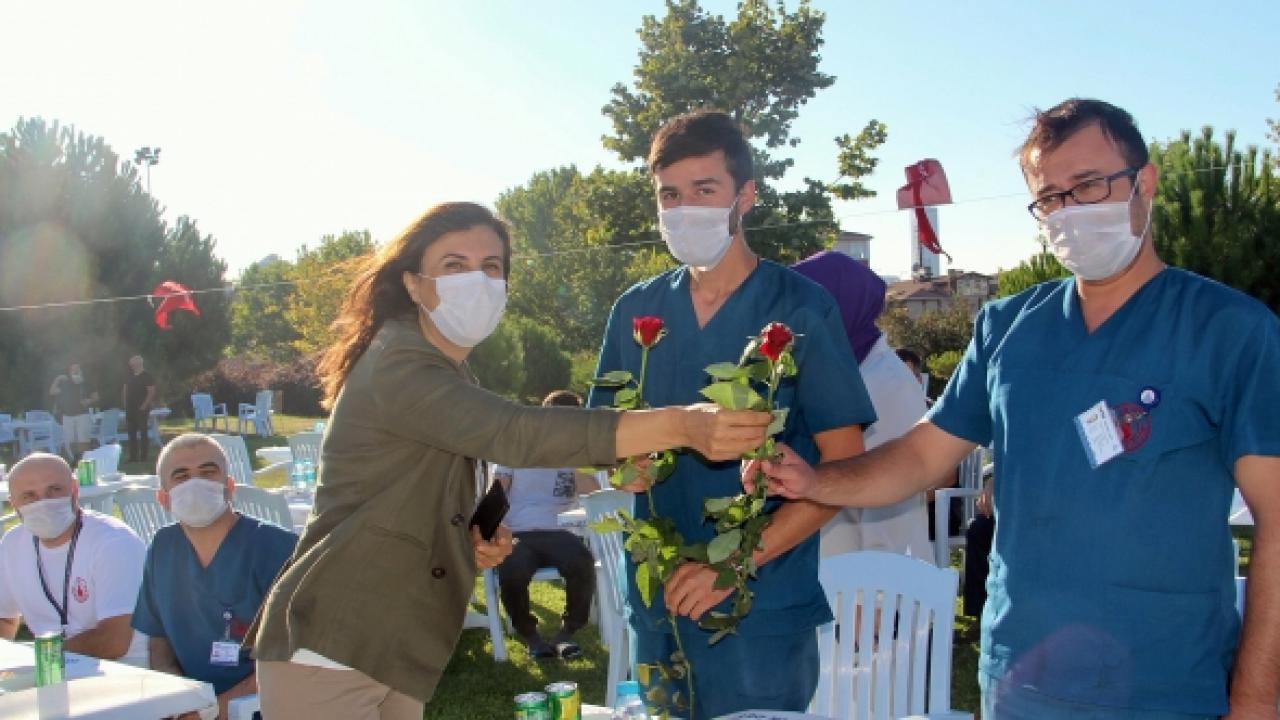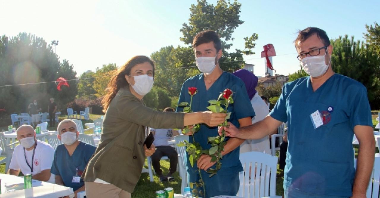 Düzenlenen programda konuşan İBB Genel Sekreter Yardımcısı Dr. Şengül Altan Arslan, İBB Başkanı Ekrem İmamoğlu’nun, “Herkesin mutlu olduğu sağlık kenti İstanbul” vizyonuyla çalışmalarını sürdürdüklerini söyledi. Pandemi’nin başladığı tarihten günümüze geçen süreyi başarıyla tamamladıklarını ve “sıfır vaka” hedeflerinin devam ettiğini ifade eden Arslan, konuşmasını şöyle sürdürdü: “Pandemiyle olan ilk altı aylık dönemi başarıyla geride bıraktık; Ancak henüz bir şey bitmedi. Önümüzdeki günler de çok parlak gözükmüyor.Aynı şevk ve kararlılıkla hareket ettiğimiz sürece bizim başaramayacağımız hiçbir şey yok. O çerçevede işinin sınırlarını aşarak gönlünün emeğiyle özverisini ortaya koyan ve bu sürece sahip çıkan tüm çalışma arkadaşlarıma ekip arkadaşlarıma çok teşekkür ediyorum. Hepimiz sonuçta aynı amaç için hareket ediyoruz. Sadece sorumluluk alanlarımız farklı. Dolayısıyla hiçbirimizin emeği birbirinden üstün değil çünkü sizler o emeği ortaya koymazsanız bu başarı çıkmaz. O yüzden herkese teşekkür ediyorum.”