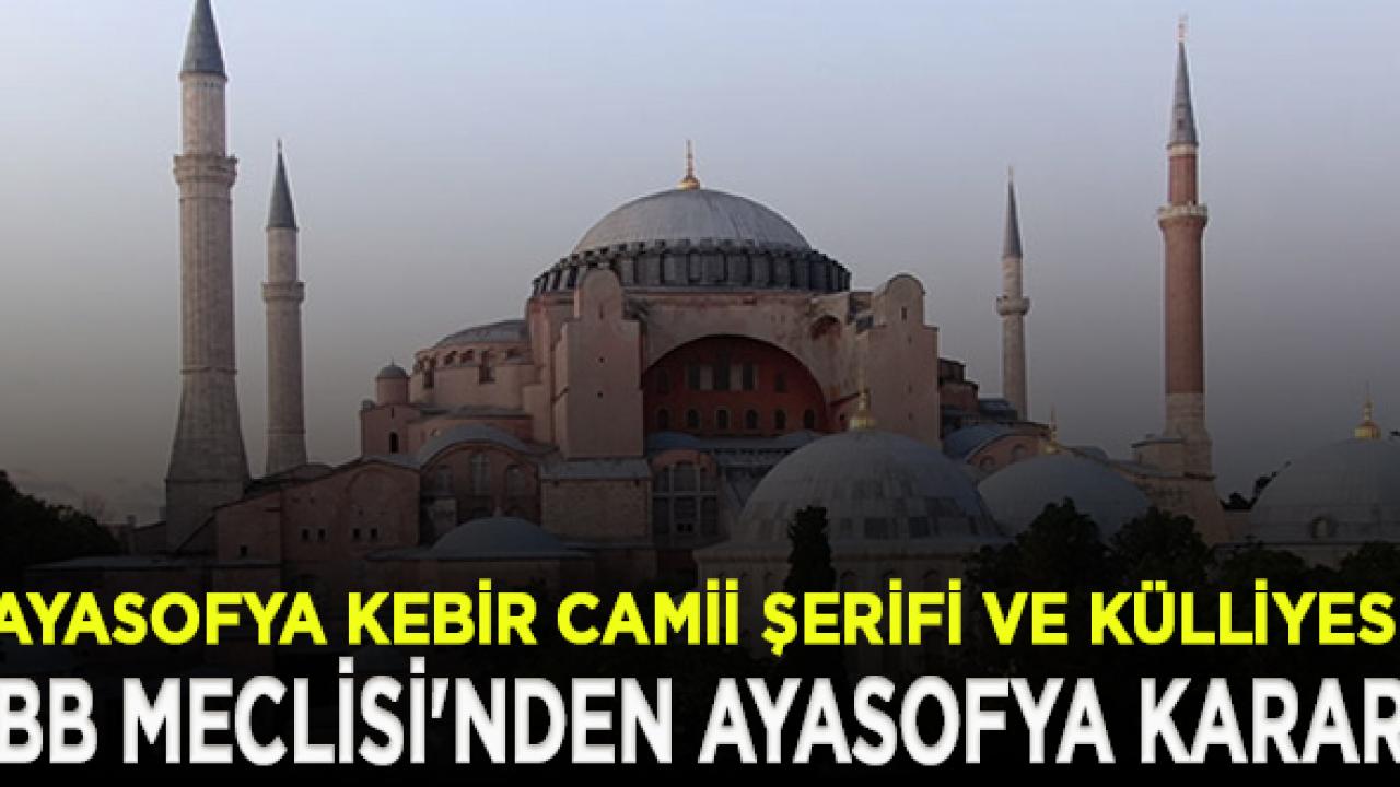 İBB Meclisi'nin Temmuz ayının 4'üncü birleşimi, pandemi kuralları çerçevesinde Yenikapı'da bulunan Avrasya Gösteri Merkezi'nde gerçekleştirildi. Meclisin 13 Temmuz Pazartesi gününde gerçekleştirilen birinci oturumunda, Ak Parti ve MHP'li Meclis üyelerinin, Ayasofya'nın planlarının 'Ayasofya Camii ve Külliyesi' olarak değiştirilmesinin gündeme eklenme talebi oy birliği ile kabul edilmişti. Teklif ile ilgili İmar ve Bayındırlık Komisyonu tarafından hazırlanan raporda, 1/5 bin ölçekli Fatih (Tarihi Yarımada) 1'inci Derece Arkeolojik, Kentsel Arkeolojik, Kentsel Tarihi Sit Alanları Koruma Amaçlı Nazım İmar Planı'ndaki "Ayasofya Cami-Müze" fonksiyonunun iptal edilerek "İbadet alanı (Ayasofya Kebir Camii Şerifi ve Külliyesi)" fonksiyonu verilmesi uygun bulundu. 1/1000 ölçekli plandaki "Ayasofya Camii-Müze" fonksiyonu da iptal edilerek yerine "Ayasofya Kebir Camii Şerifi ve Külliyesi" fonksiyonu getirildi. Bugün gerçekleştirilen oturumda görüşülen değişiklik teklifi oy birliği ile kabul edildi.