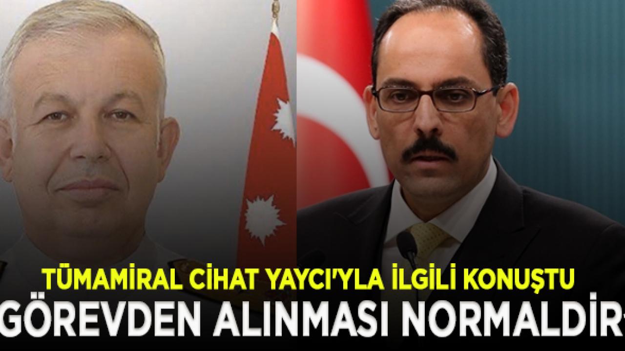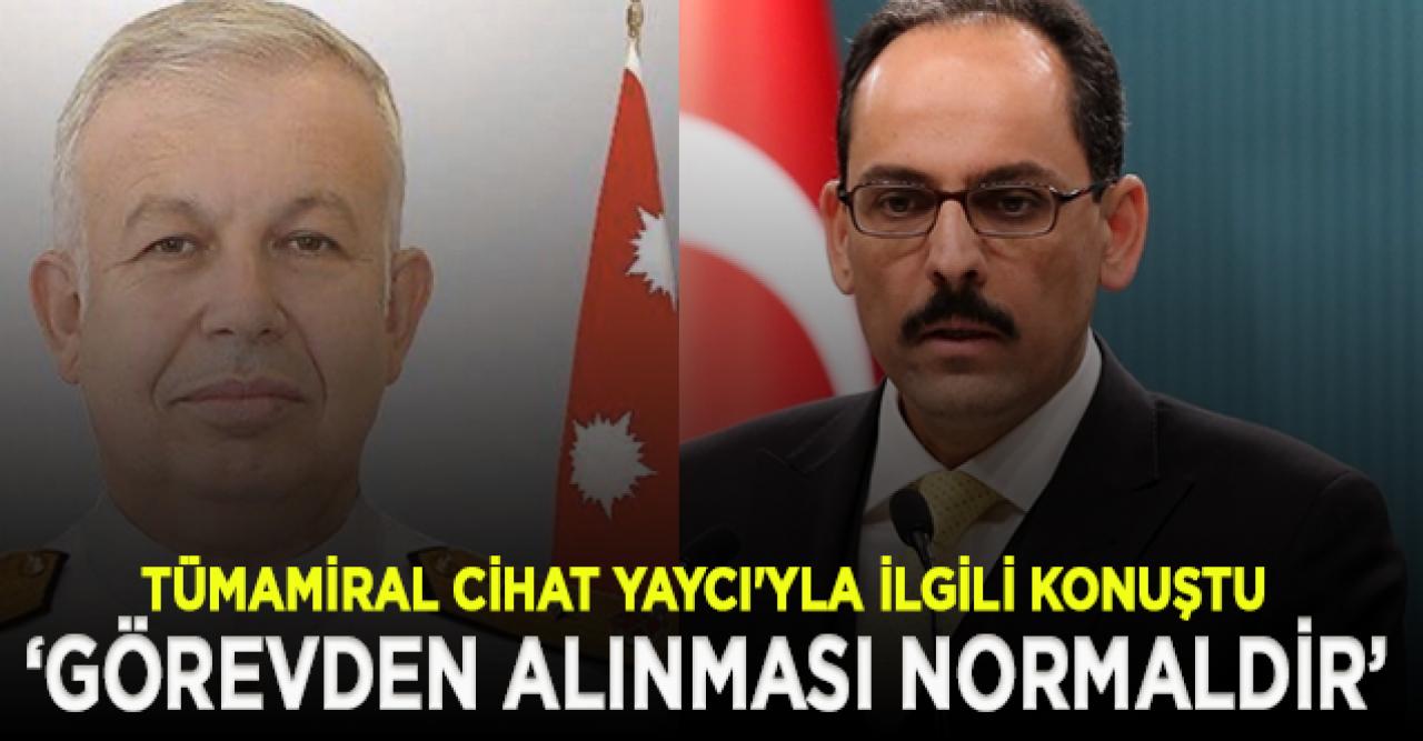 Kalın, Libya ile deniz sahası anlaşmasının mimarı olarak gösterilen, ancak Deniz Kuvvetleri Komutanlığı Kurmay Başkanlığı görevinden alınıp Genelkurmay Başkanlığı emrine verilinceistifa eden Tümamiral Cihat Yaycı'nın istifasıyla ilgili soruya yanıt verdi. Kalın, "Bir askerin görevden alınması normaldir. Kendisi çalışmaları ve eserleriyle katkı vermiştir. Bundan sonra da verebilir." şeklinde konuştu.