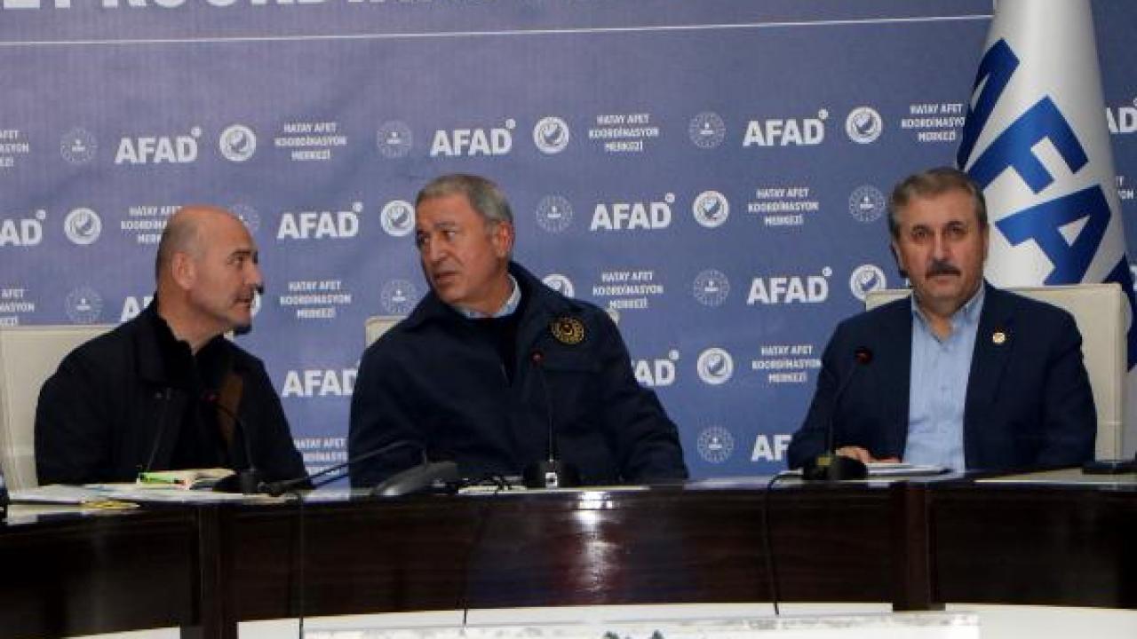 Can ÇELİK- Yaşar SERİNTÜRK/HATAY, (DHA)- İÇİŞLERİ Bakanı Süleyman Soylu, Milli Savunma Bakanı Hulusi Akar ve Büyük Birlik Partisi (BBP) Genel Başkanı Mustafa Destici, Hatay’da İl Afet Koordinasyon Toplantısı'na katıldı.